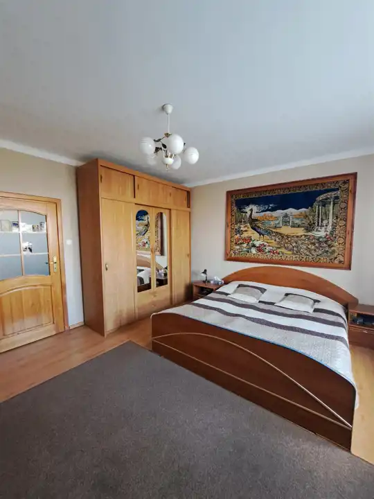- budynek mieszkalny o powierzchni zabudowy 122 m2, częściowo podpiwniczony, piętrowy z dachem konstrukcji drewnianej krytym blachodachówką. Dom wielokrotnie remontowany i modernizowany - nowa instalacja oraz piec co na pelet, okna pcv, docieplenie ścian zewnętrznych. Funkcje pomieszczeń: piwnica - kotłownia i skład opału, parter - korytarz, spiżarnia, kuchnia z jadalnią, dwa pokoje i dwie łazienki, piętro - trzy pokoje, kuchnia, łazienka, strych - otwarta przestrzeń do dowolnej aranżacji. Budynek do zamieszkania od zaraz.