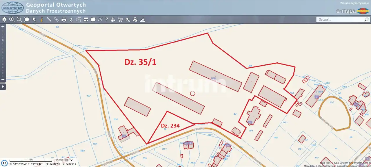 W skład nieruchomości wchodzą działki gruntu o numerach 35/1 i 234 o łącznej pow. 3,7912 ha zabudowane budynkami produkcyjno- magazynowych, warsztatowymi i administracyjno- socjalnymi o łącznej powierzchni użytkowej 5 269,00 m2.