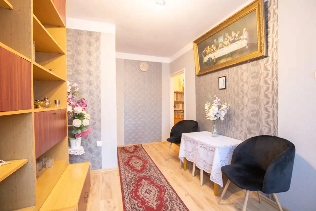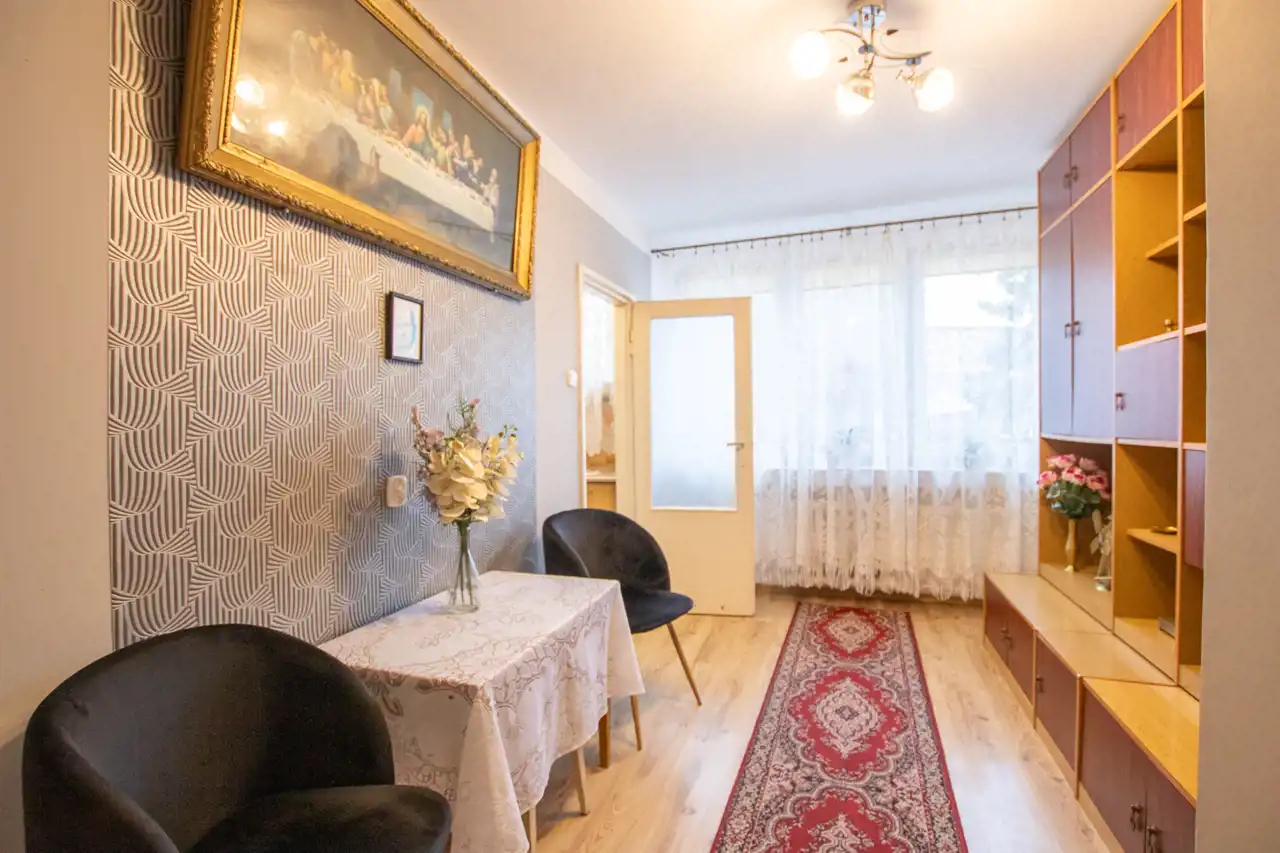 - Pokój 1: duży, jasny, przestronny salon z miejscem na zestaw mebli wypoczynkowych i nie tylko