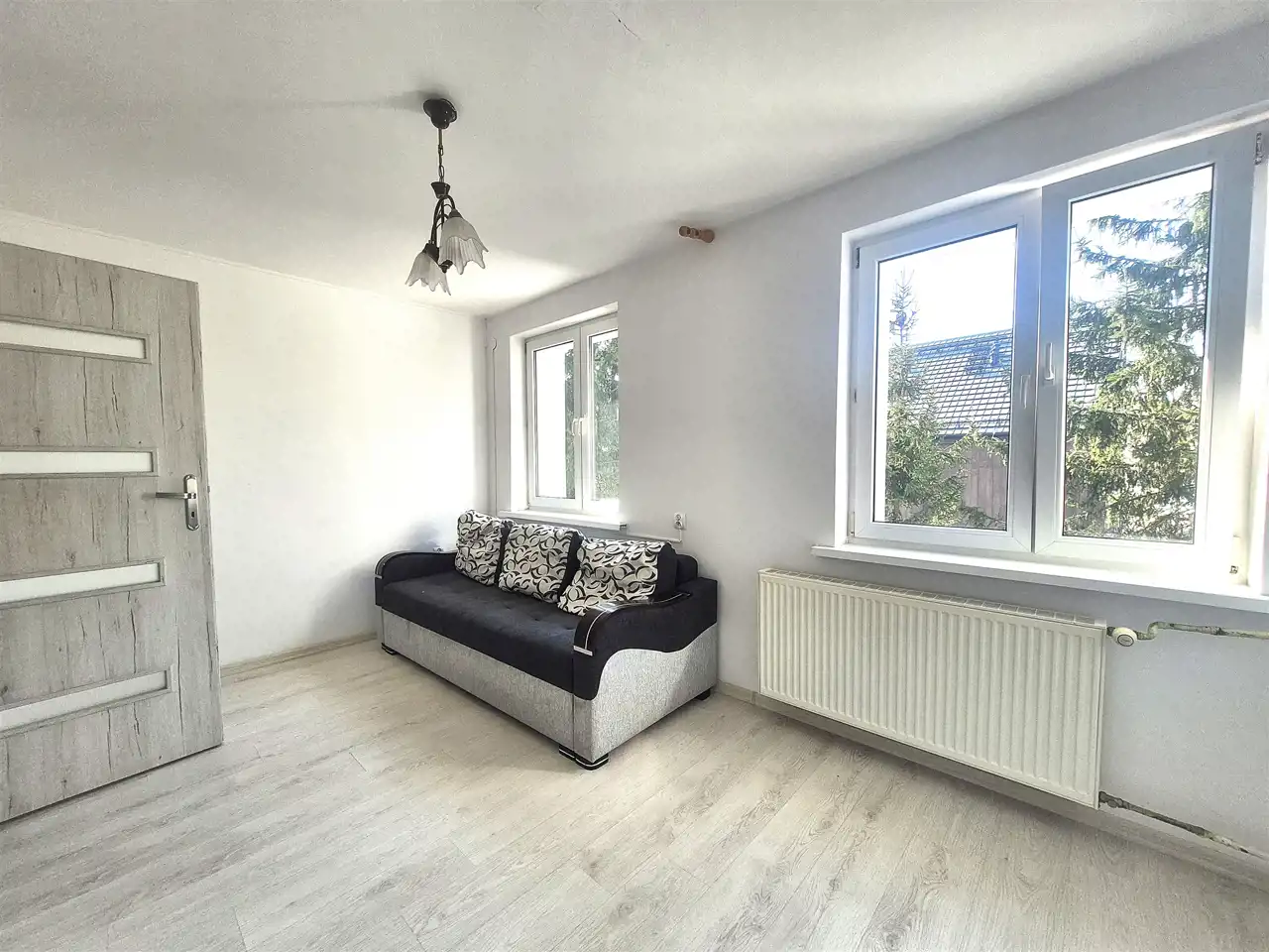 Mieszkanie znajduje się w dwupiętrowym budynku po termomodernizacji. Co ważne, właściciele zadbali o wykończenie w przyzwoitym standardzie, dlatego lokal nie wymaga dużych dodatkowych nakładów aby zamieszkać. Kuchnia wymaga zabudowy.