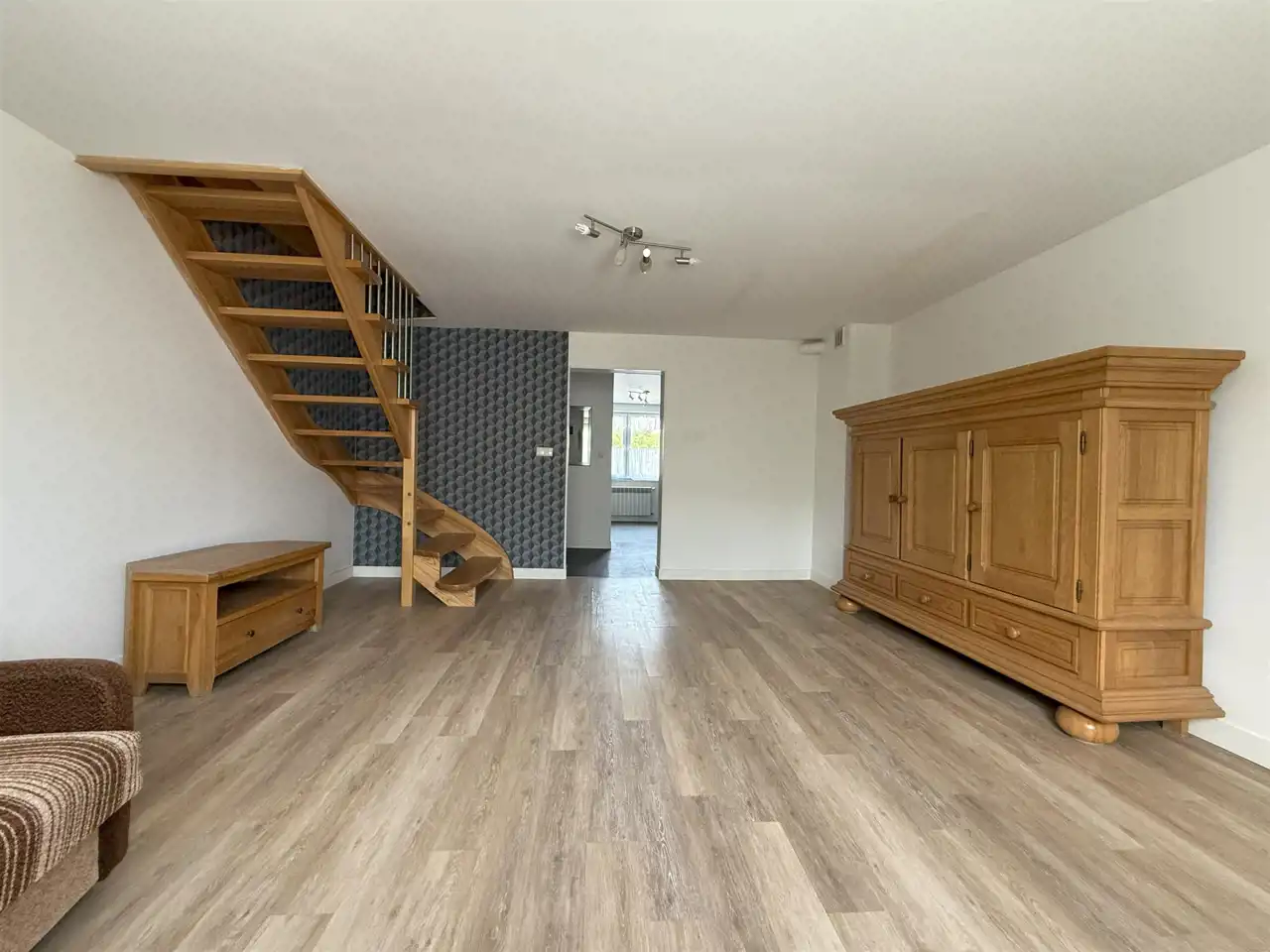 Drewniane schody, które łączą poziomy i wprowadzają naturalne ciepło oraz estetykę do wnętrza.