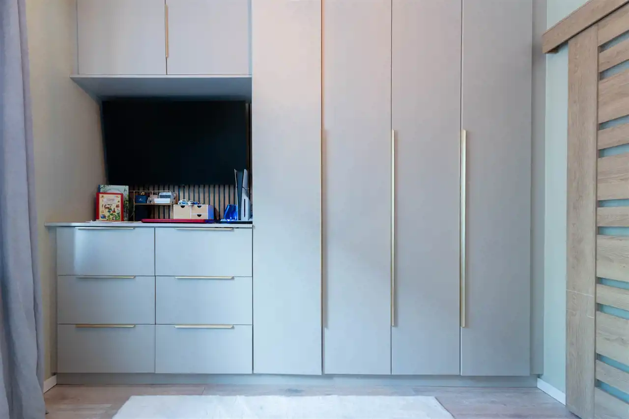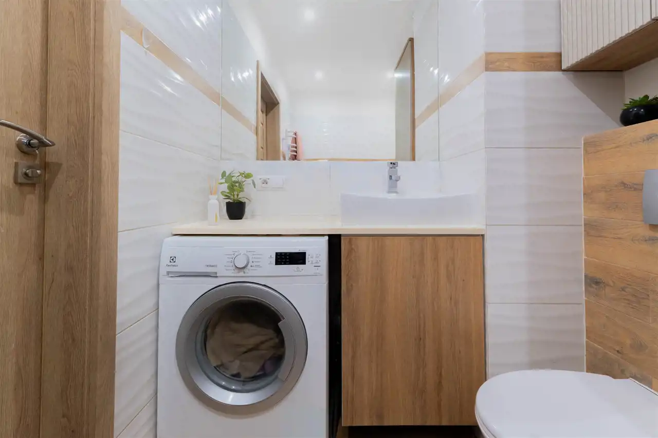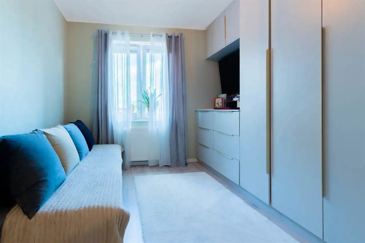 - Praktyczne i piękne wykończenie Jasny pokój dzienny z aneksem kuchennym – kuchnia na wymiar, gotowa do użytkowania od pierwszego dnia. W salonie: eleganckie wiszące szafki górne + szafka RTV – wszystko ma swoje miejsce. Drugi pokój: ogromna szafa na wymiar na całą ścianę – zmieścisz ubrania, pościel i wszystko, co chcesz schować. Przedpokój: dodatkowa szafa na wymiar – porządek już od wejścia. Łazienka wykończona w pięknych jasnych kolorach – czysta, nowoczesna i relaksująca.