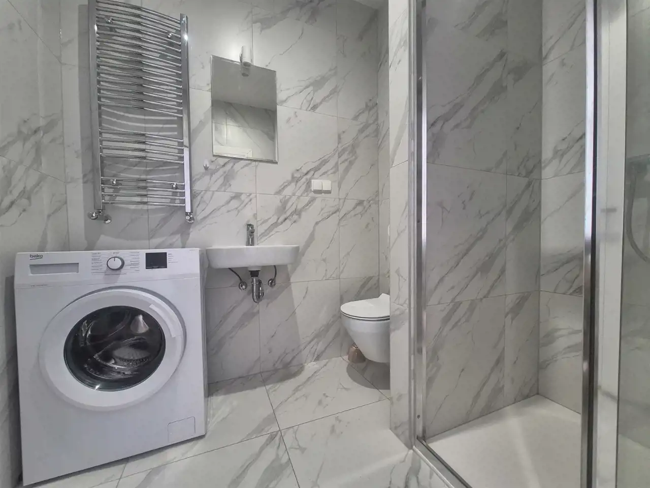 - z łazienki z kabiną prysznicową .