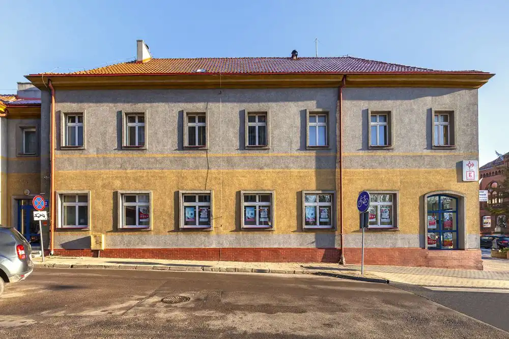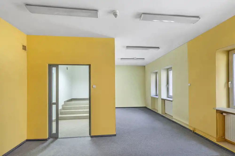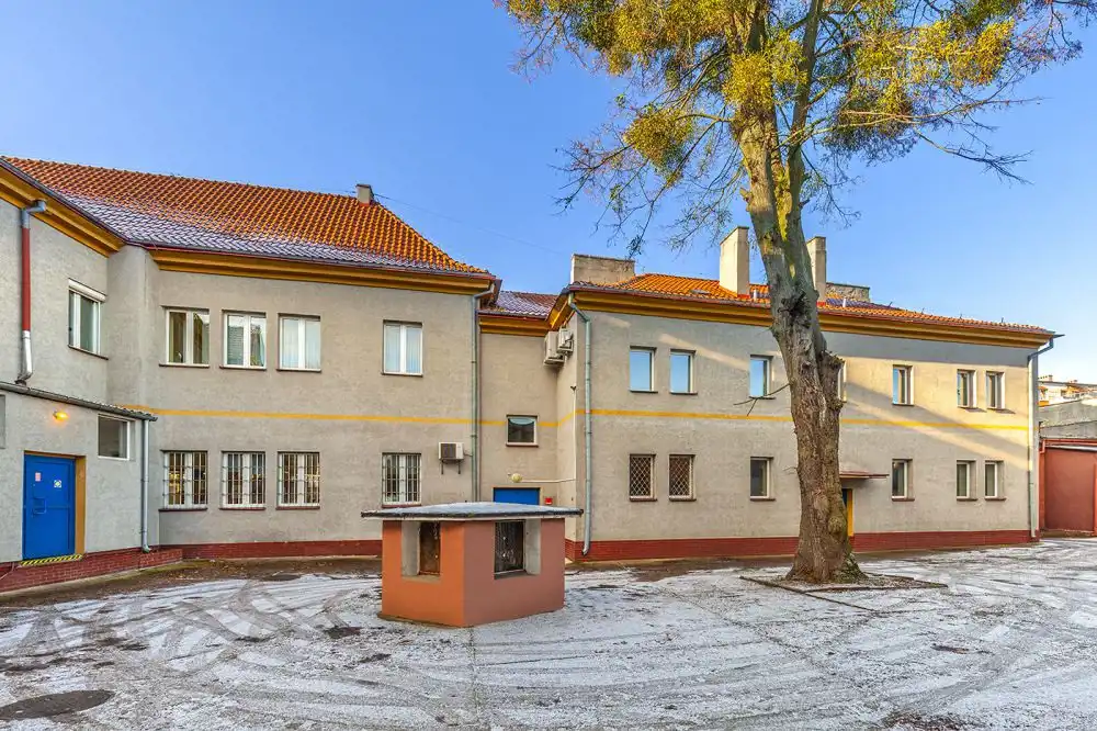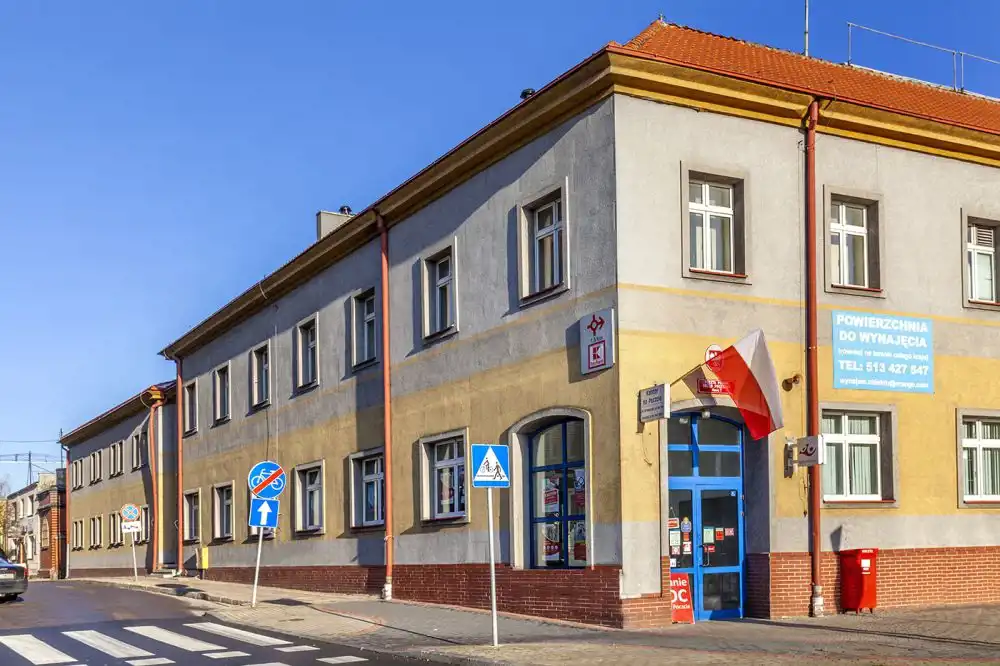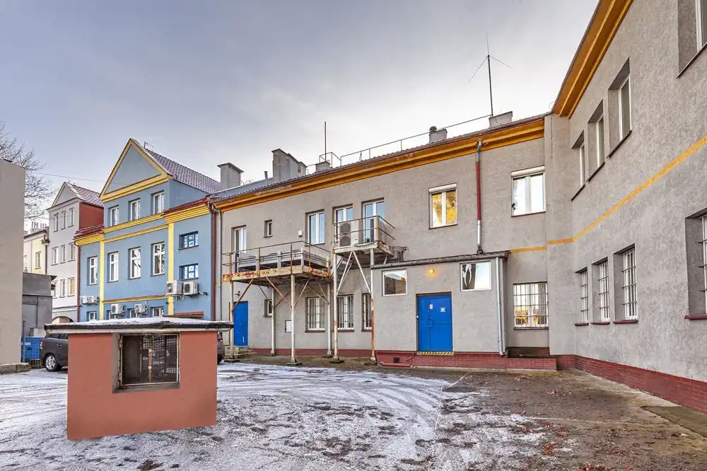 - budynek biurowy o pow. użytkowej 1444,4 m2 (do budynku prowadzą 4 wejścia od strony podwórza i 1 wejście od strony ul. Kazimierza Jagiellończyka)
