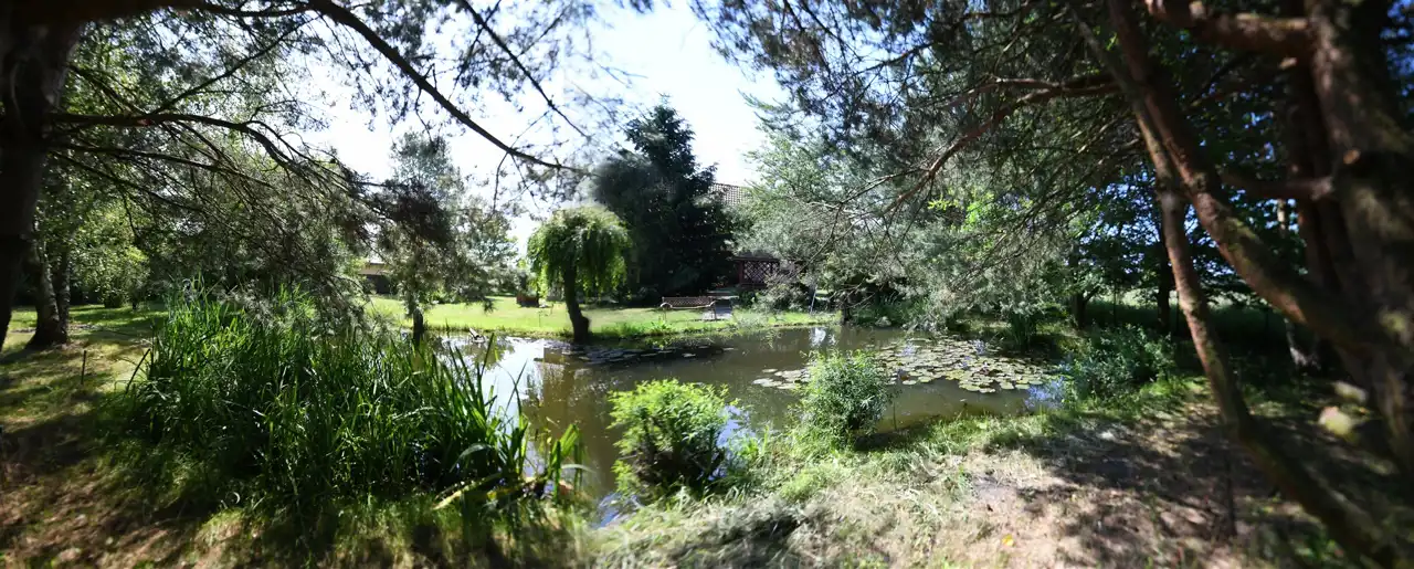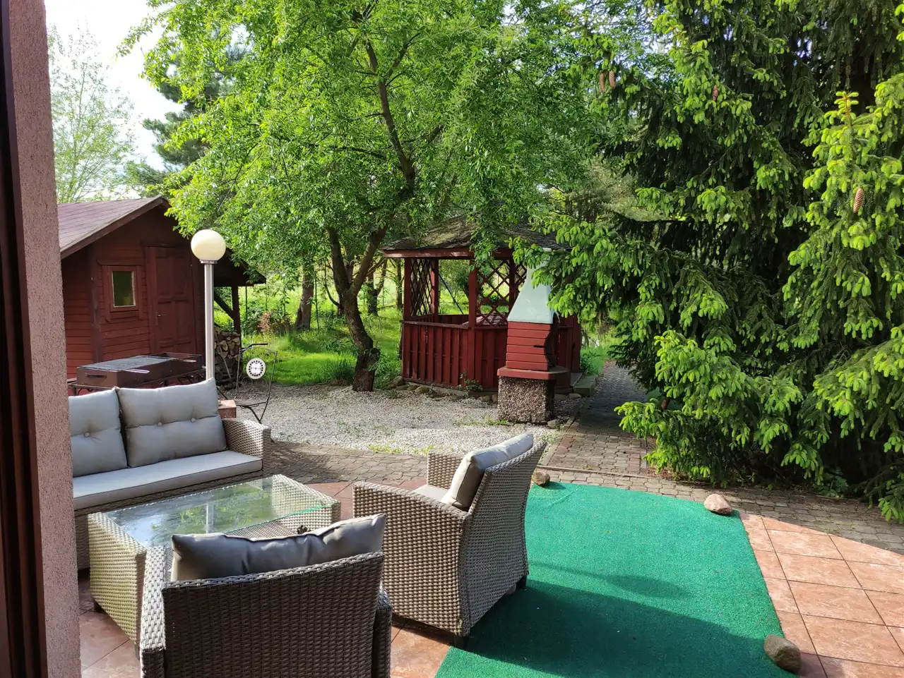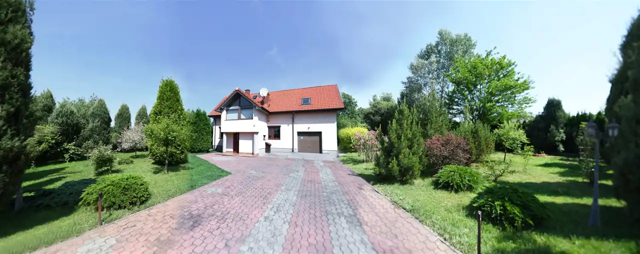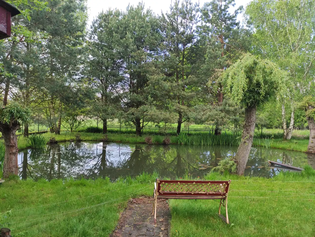 Dom położony jest na przepięknie zagospodarowanej działce o powierzchni 1925m2 z dużą ilością roślin. Na terenie posesji znajduje się zarybiony staw z pięknymi roślinami wodnymi. Własny system melioracyjny gwarantuje samoczynne odwodnienie działki w trakcie deszczu. Przed domem na terenie posesji znajduje się plac z kostki brukowej o pow. 120m2. Przy stawie usytuowany jest drewniany domek gospodarczy z wiatą na drewno oraz drewniana altanka i murowany grill.