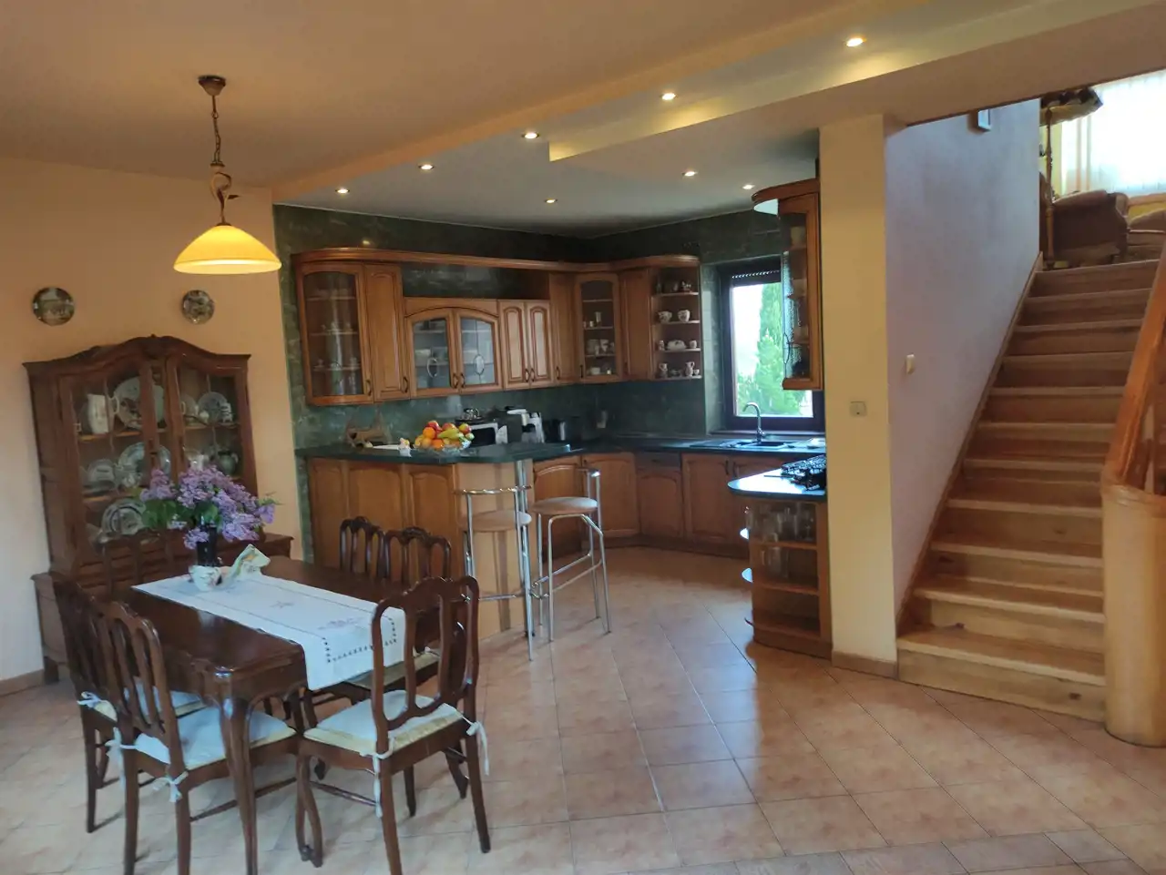 Podłogi na parterze są ogrzewane- terakota, na półpiętrze i piętrze drewniane, a w łazienkach glazura.
