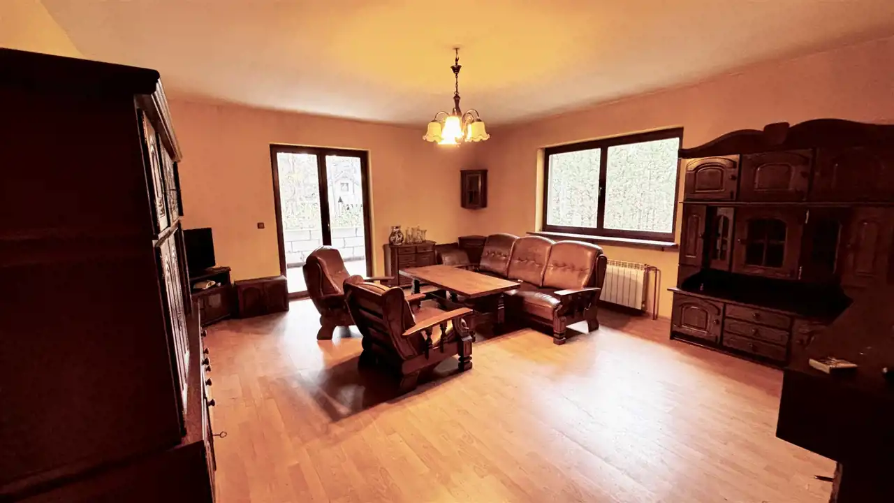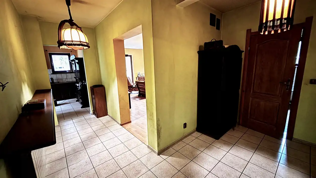 Dom solidnie wybudowany, ocieplony i otynkowany. Układ pomieszczeń funkcjonalny i wygodny, z możliwością własnej aranżacji. Wnętrze wymaga odświeżenia, natomiast zewnątrz dom wymaga częściowego remontu, co daje nowemu właścicielowi możliwość dostosowania domu do własnych potrzeb i gustu.
