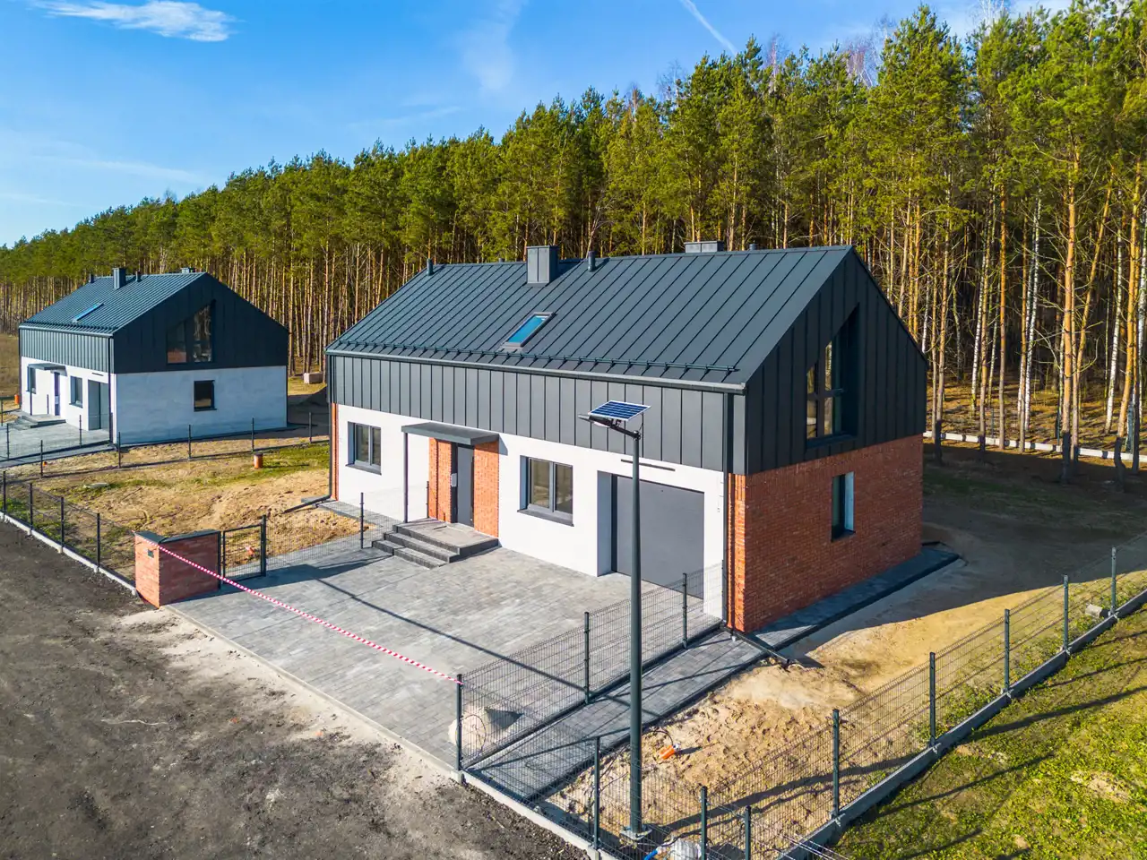 Każda z posesji posiada oświetlenie solarne.