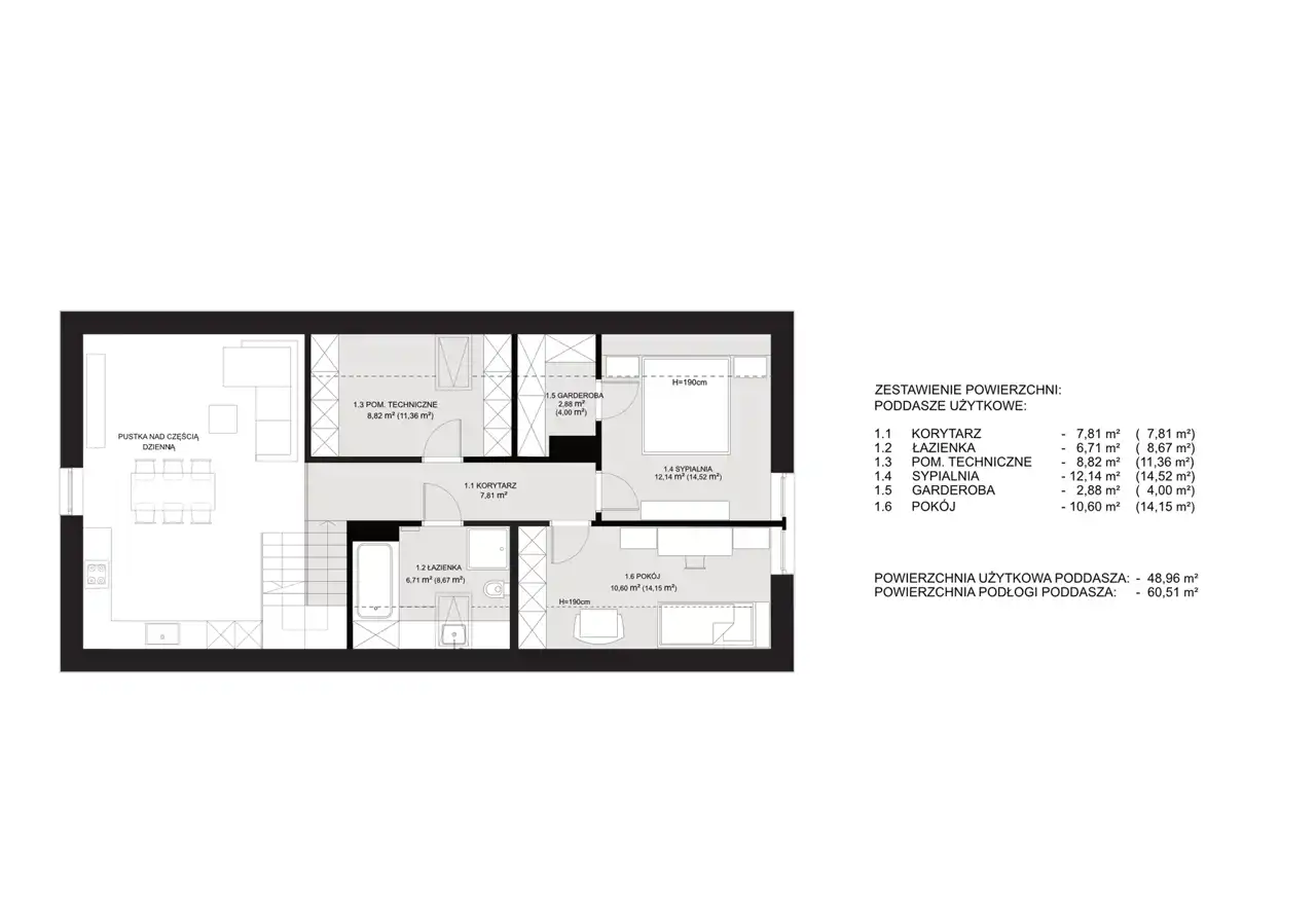 - pomieszczenie techniczne/pokój 11,36 m2,