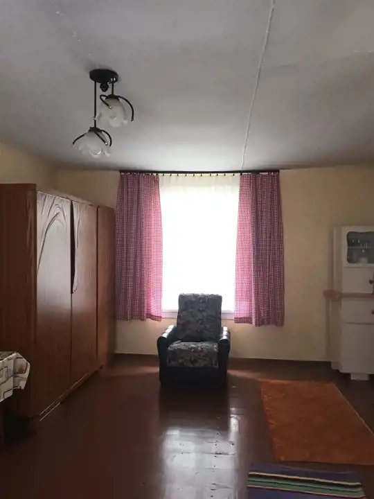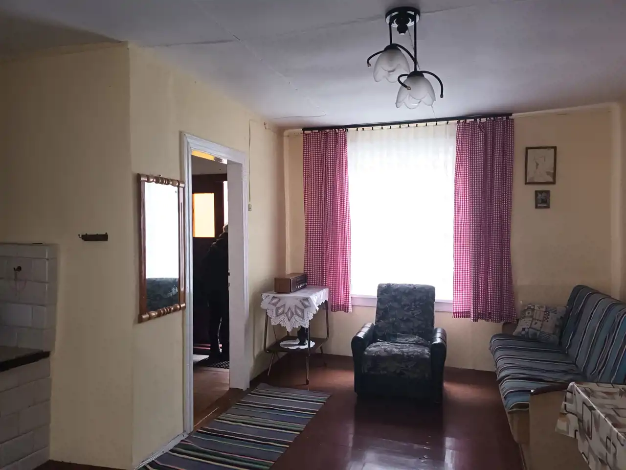Dom parterowy nadający się do remontu. W domu dwa pomieszczenia, bez łazienki. Na podłodze deski, a na ścianach tynk zwykły, okna drewniane. Kuchnia kaflowa. Dom zbudowany z bala. Na dachu eternit. Ogrodzenie mieszane.