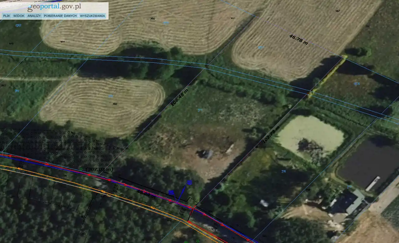 - Media Woda: sieć rozprowadzona; Kanalizacja: brak; Prąd: na działce