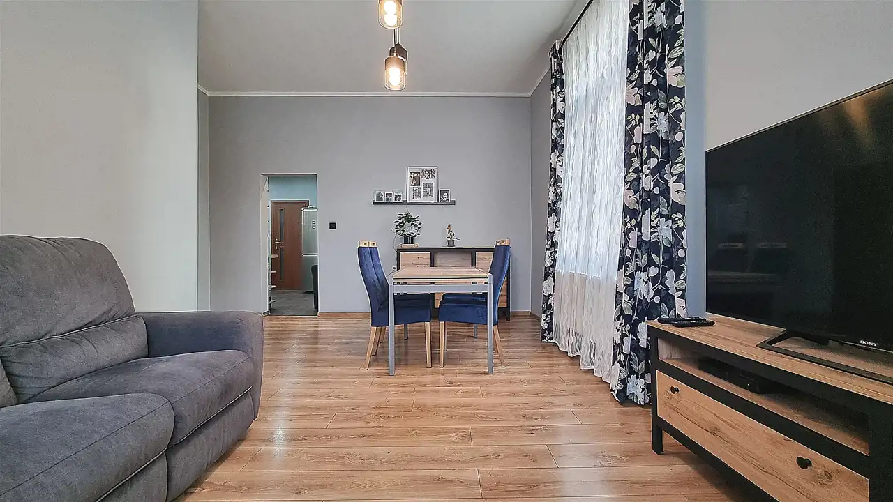 W ramach sprzedawanego udziału zostało podpisane porozumienie z pozostałymi Współwłaścicielami do wyłącznego korzystania dotychczas posiadanego 3-pokojowego lokalu mieszkalnego (tzw. quoad usum) o powierzchni użytkowej 69,26m2. Lokal usytuowany jest na 1. piętrze i obejmuje 3 pokoje, kuchnię, łazienkę i przedpokój. Stan techniczny mieszkania po dokonanym remoncie z centralnym ogrzewaniem gazowym. Na wyposażeniu pozostaje stałe umeblowanie.
