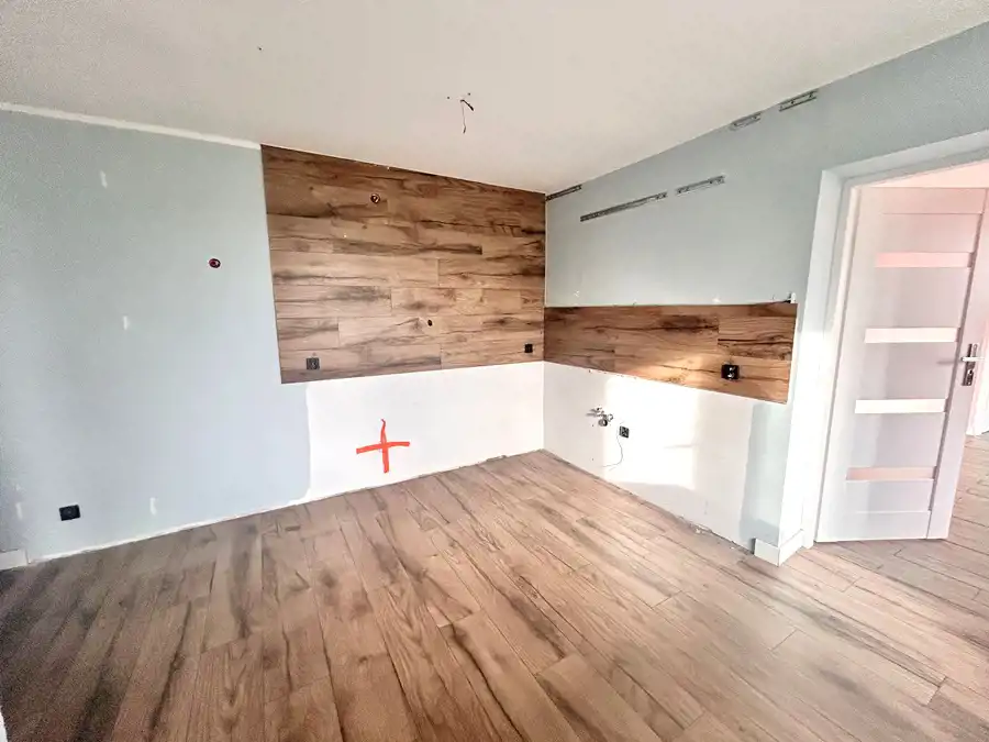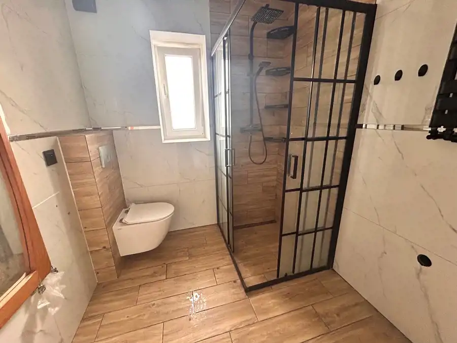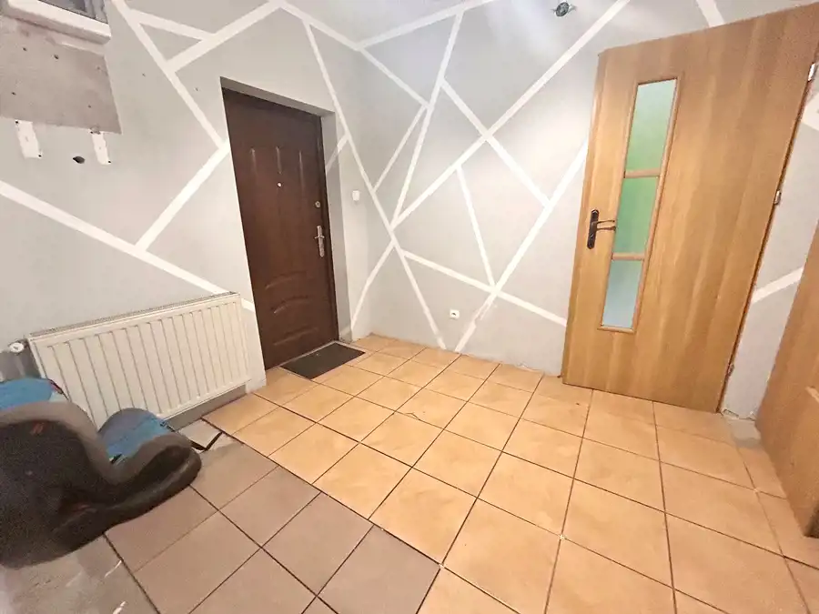 Salon jest duży i przestronny, na podłodze znajdują się panele, na ścianach gładzie. W pokojach na podłodze położone zostały płytki gresowe, na ścianach gładzie. W jednym pokoju na podłodze znajdują się panele, na ścianach gładzie. Na korytarzach płytki ceramiczne położone na podłodze, na ścianach tapety oraz gładź pokryta powłoką malarską. Jedna łazienka wyposażona w kabinę prysznicową oraz miskę WC ze stelażem podtynkowym, na ścianach i podłodze płytki gresowe. W drugiej łazience znajduje się wanna i WC kompaktowe, lecz ona wymaga wykończenia (gołe ściany i posadzki). W kuchni z jadalnią na podłodze znajdują się płytki gresowe, na ścianach gładź pokryta powłoką malarską oraz płytki ceramiczne w pasie roboczym. W drugiej kuchni na podłodze płytki gresowe, na ścianach gładzie.
