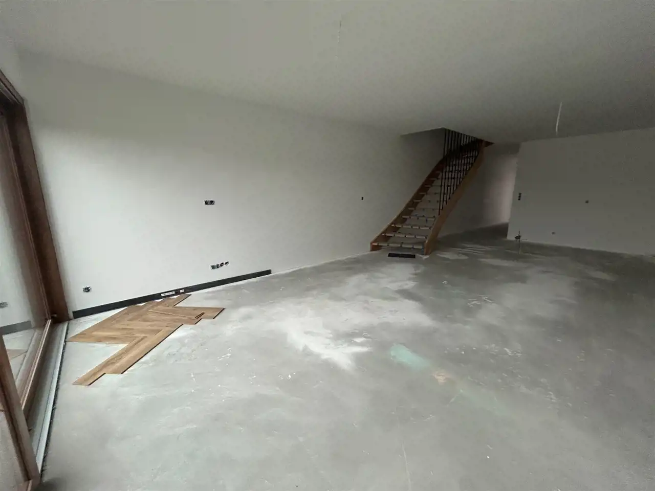 Ściany pomalowane, gniazda elektryczne zamontowane.