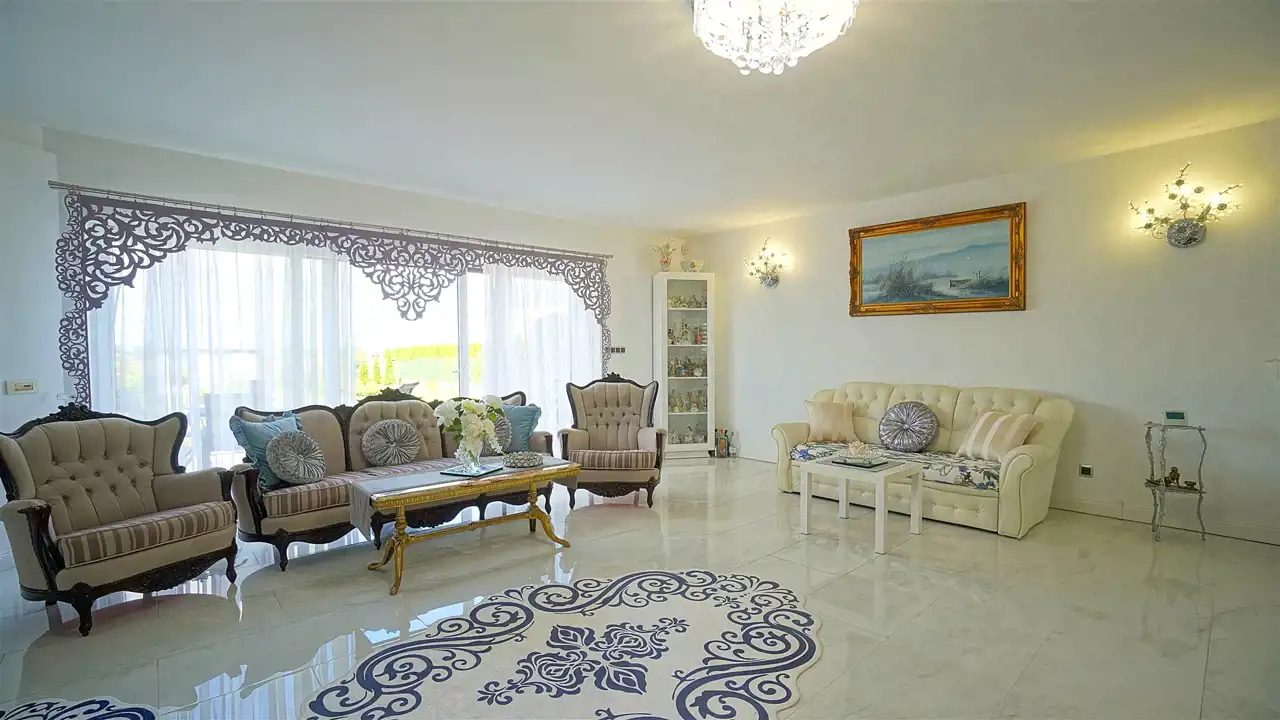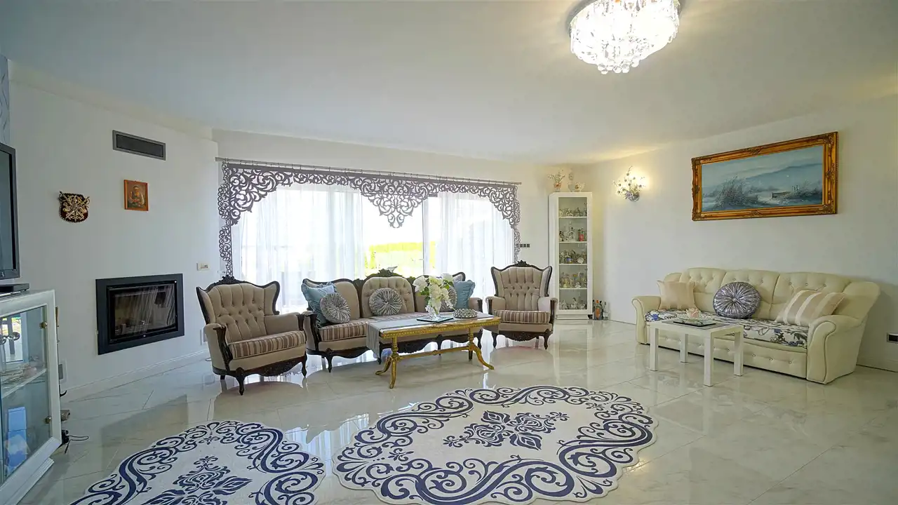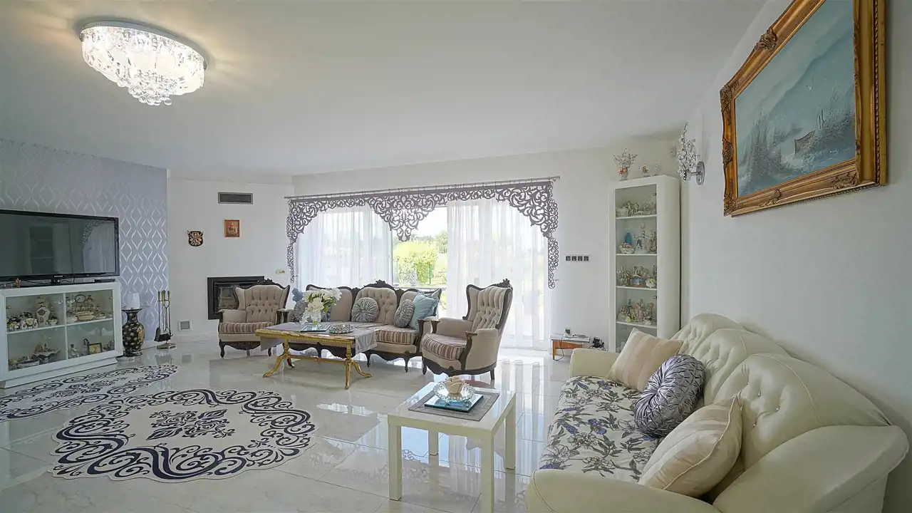 Cena obejmuje umeblowanie ruchome, kompletne oświetlenie za wyjątkiem kącika wypoczynkowego z ławą marmurową.