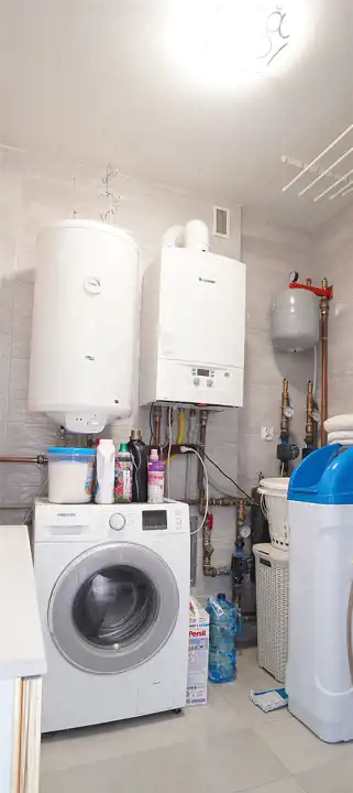 Budynek ogrzewany dwoma systemami ogrzewania: gazowe + kominkowe z rozprowadzeniem płaszcza wodnego, woda podgrzewana przez kocioł gazowy lub elektryczny bojler. Technologia budowy: bloczki z betonu komórkowego kl.600, grub. 24Cm z dachem wielospadowym krytym dachówką ceramiczną. W budynku funkcjonuje stacja uzdatniania wody. Parter domu zabezpieczony roletami antywłamaniowymi sterowanymi elektrycznie.