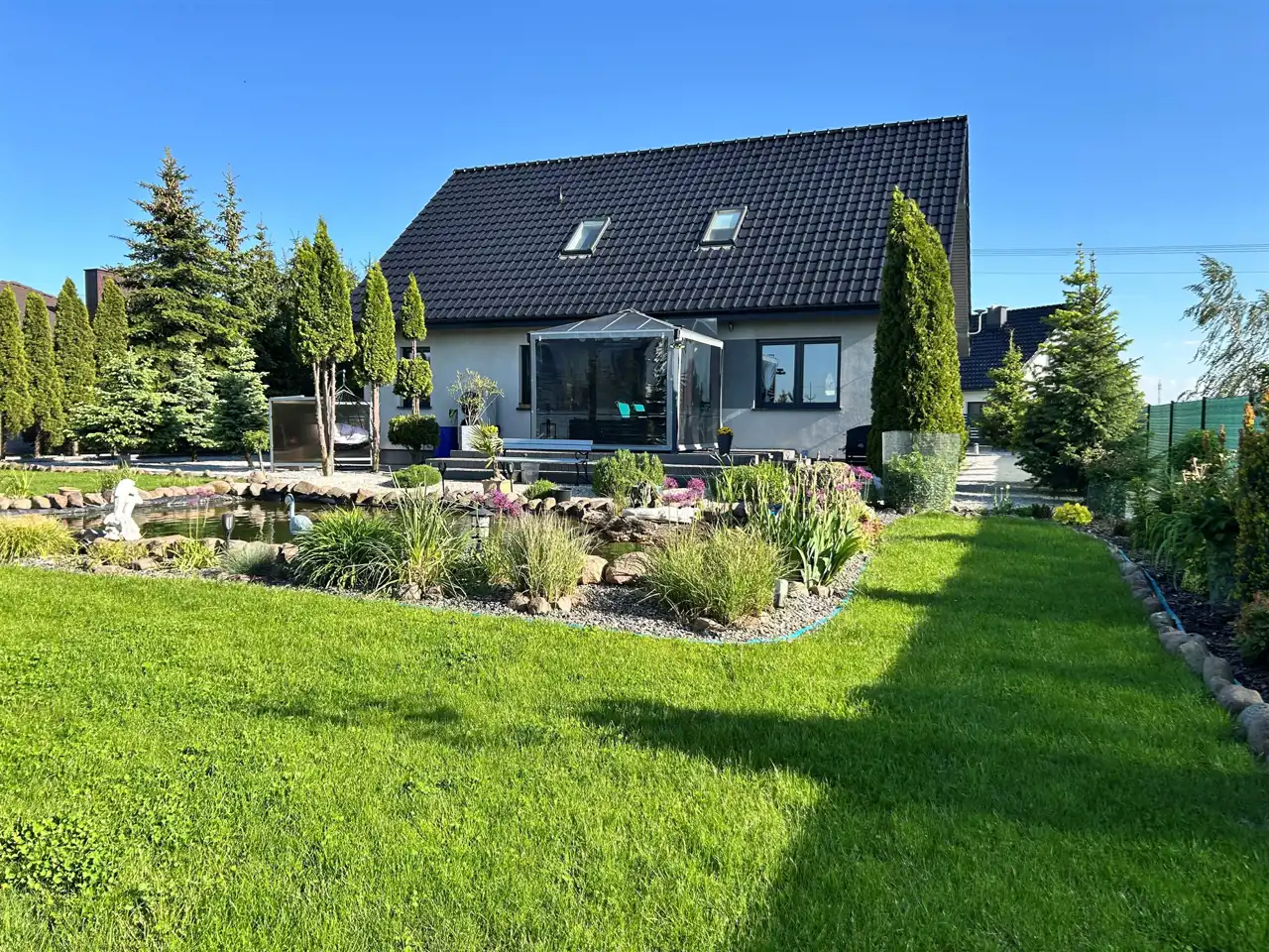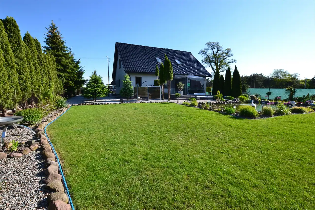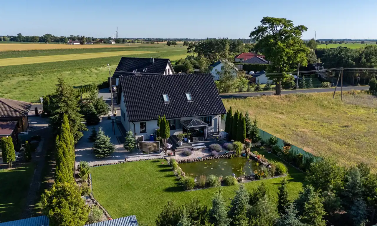 Nieruchomość położona jest na działce o powierzchni 1054 m2. Działa jest w pełni zagospodarowana i ogrodzona. Z każdej strony budynku znajduje się zadbana kostka brukowa. Na samej działce znajdują się liczne nasadzenia kwiatów, krzewów i drzew oraz pięknie zadbany i równy trawnik. W ogrodzie znajduje się dodatkowy garaż blaszany, który jest wykorzystywany jako miejsce do przechowywania mebli i sprzętu ogrodowego oraz przestronny osłonięty taras idealny do delektowania się pyszną kawą. Oprócz tarasu znajduje się tu również miejsce na jacuzzi, a także palenisko do ogniska na spotkania z przyjaciółmi i rodziną. Dodatkowo w ogrodzie zamontowane jest oczko wodne z wieloma gatunkami ryb, m.in. karpie koi co stanowi dodatkową atrakcję dla wędkarzy i wielbicieli ryb :)