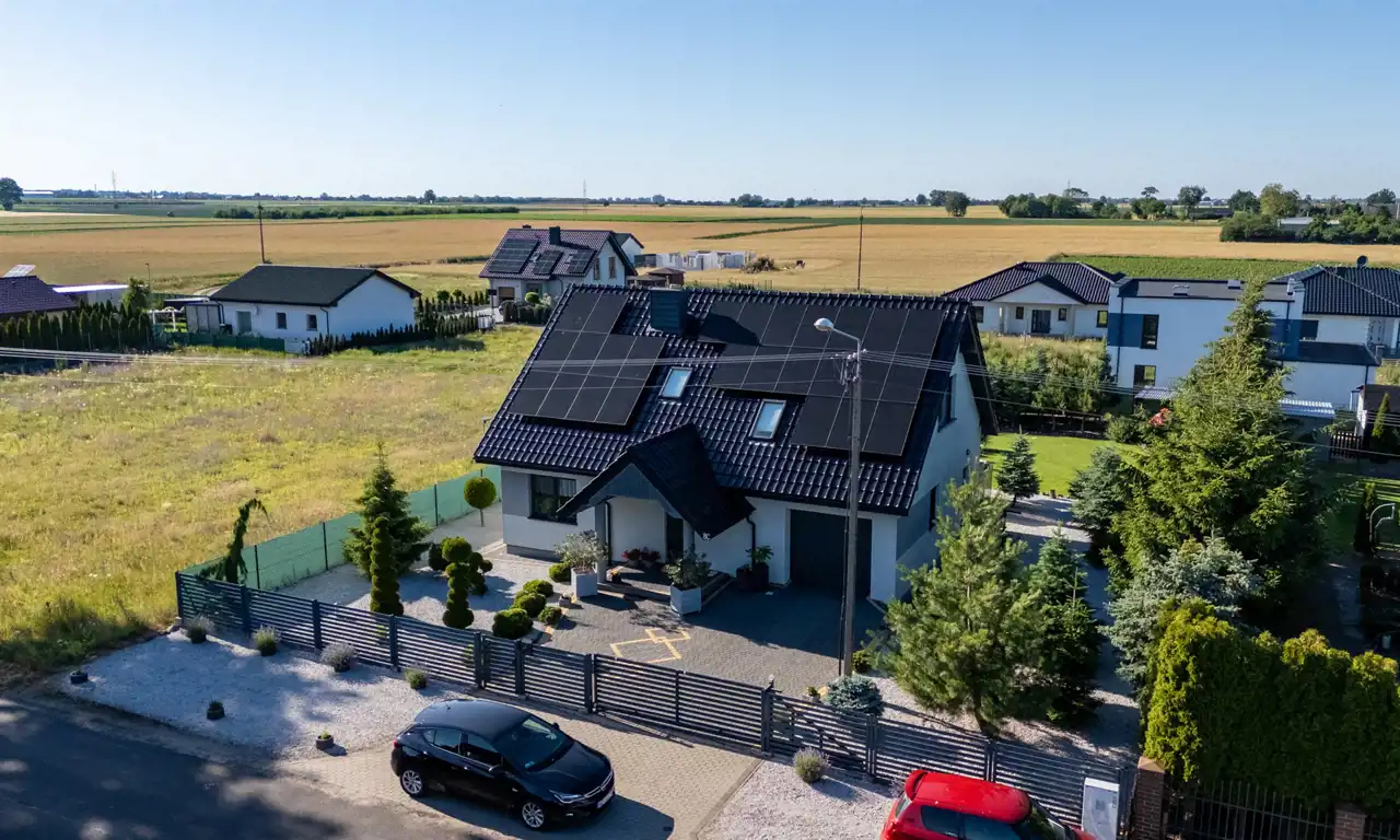 - Na dachu zamontowane są panele fotowoltaiczne o mocy 9,3 kW co zapewnia bardzo niskie koszty energii.