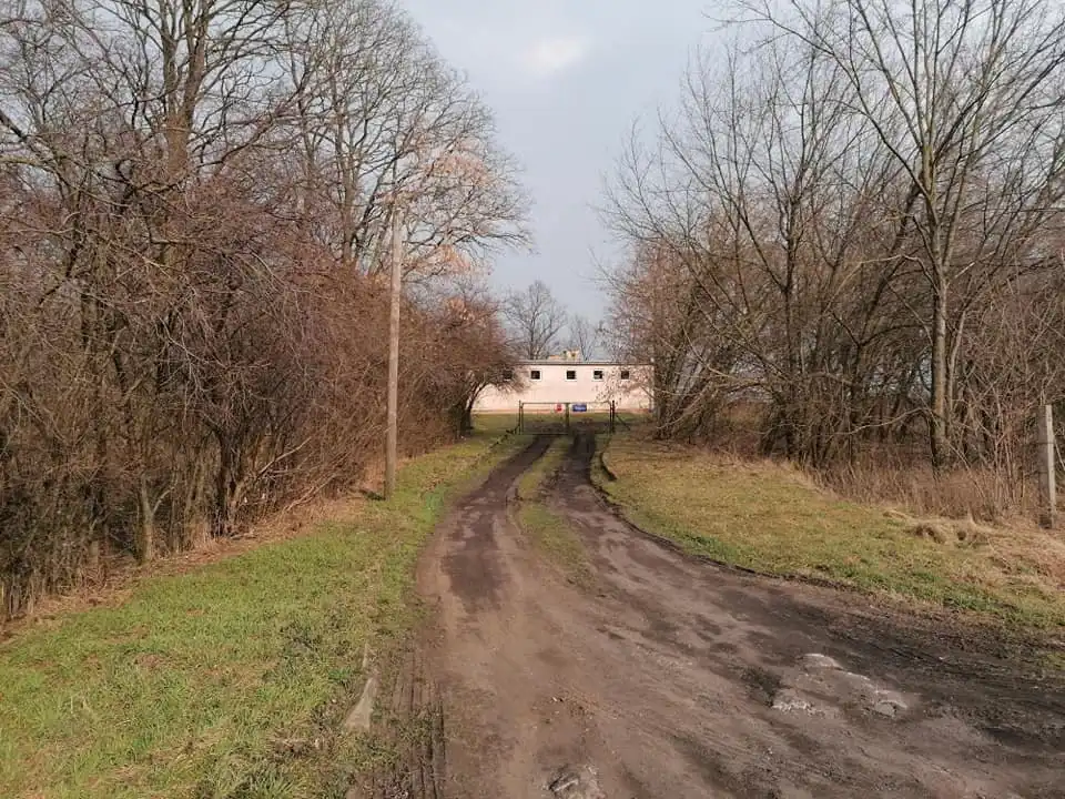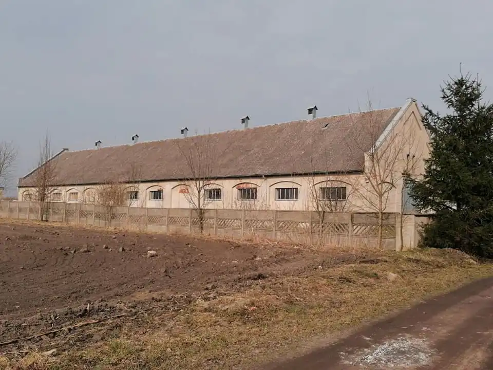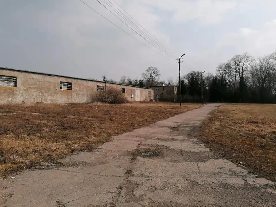 - podwórze o powierzchni około 0,5 hektara z utwardzoną drogą prowadzącą do obu hal, tu znajduje się także cementowy silos;