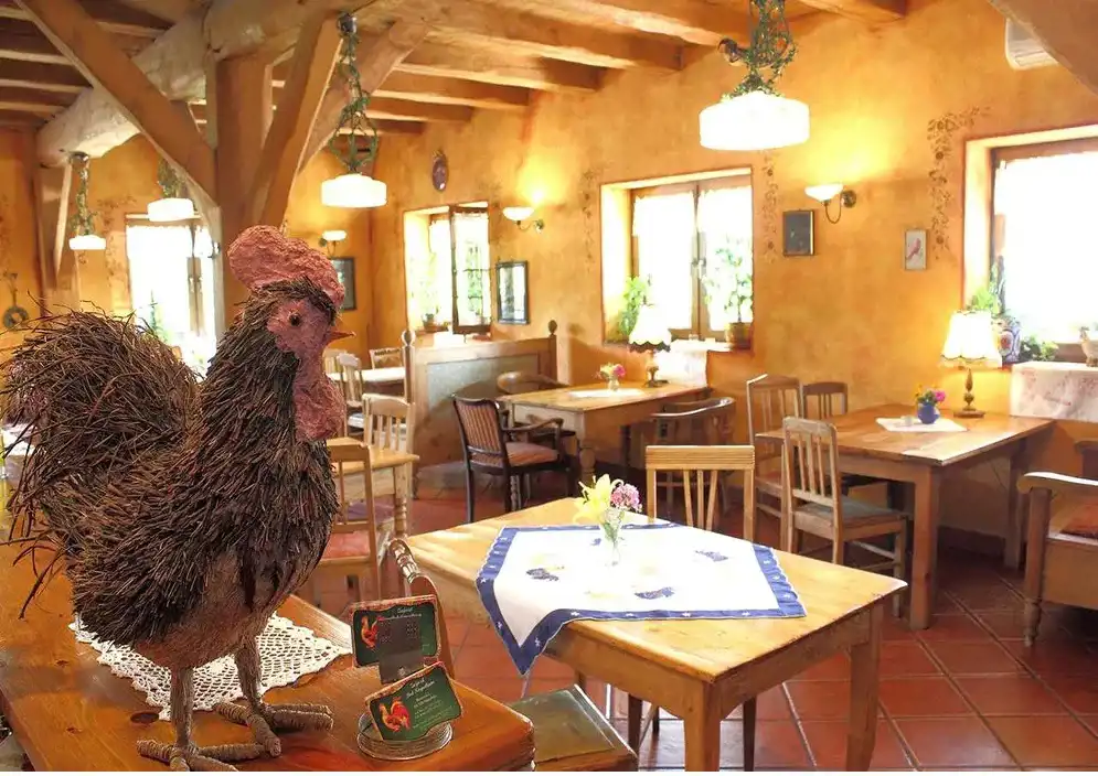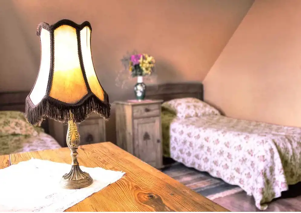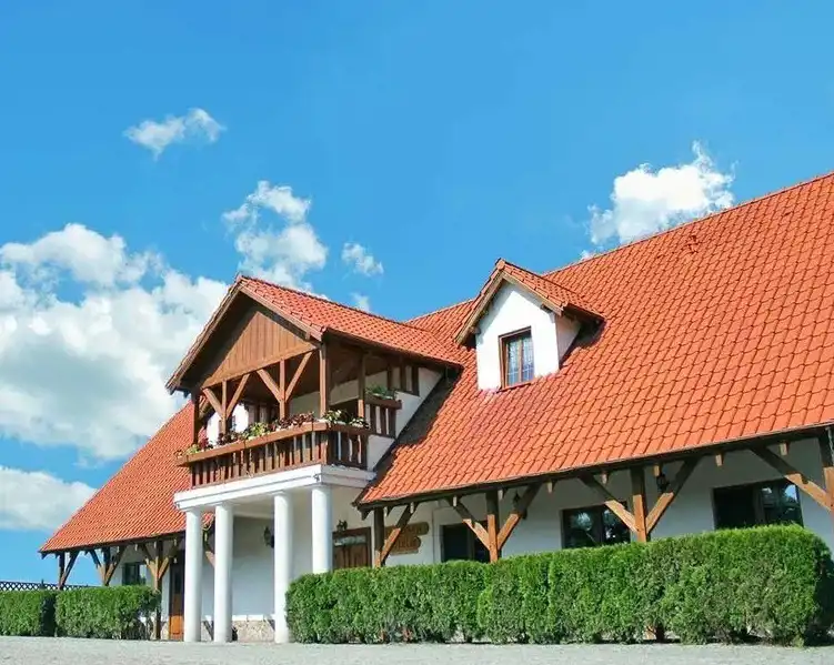 Na pierwszym piętrze znajduje się 12 pokoi z łazienkami. A przed zajazdem parking z dużą ilością miejsc parkingowych.