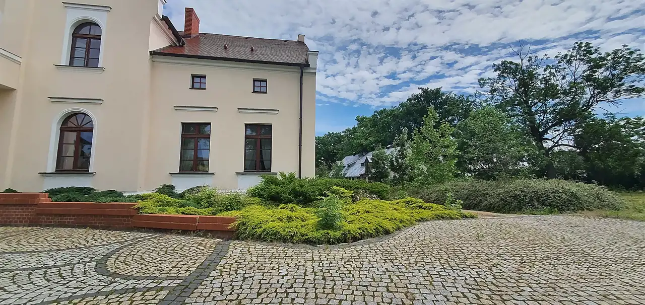 Na działce 13.900 metrów kwadratowych usadowiony jest budynek o charakterze pałacowym , wpisany do rejestru zabytków o powierzchni użytkowej 492 metry oraz budynek gospodarczy o powierzchni 164 metry kwadratowe.
