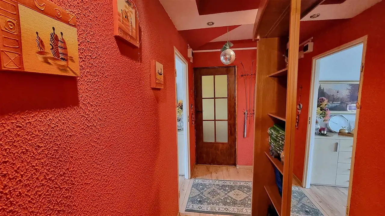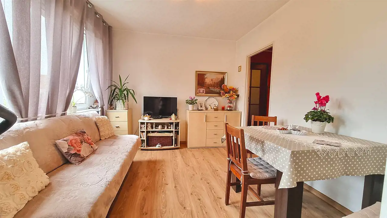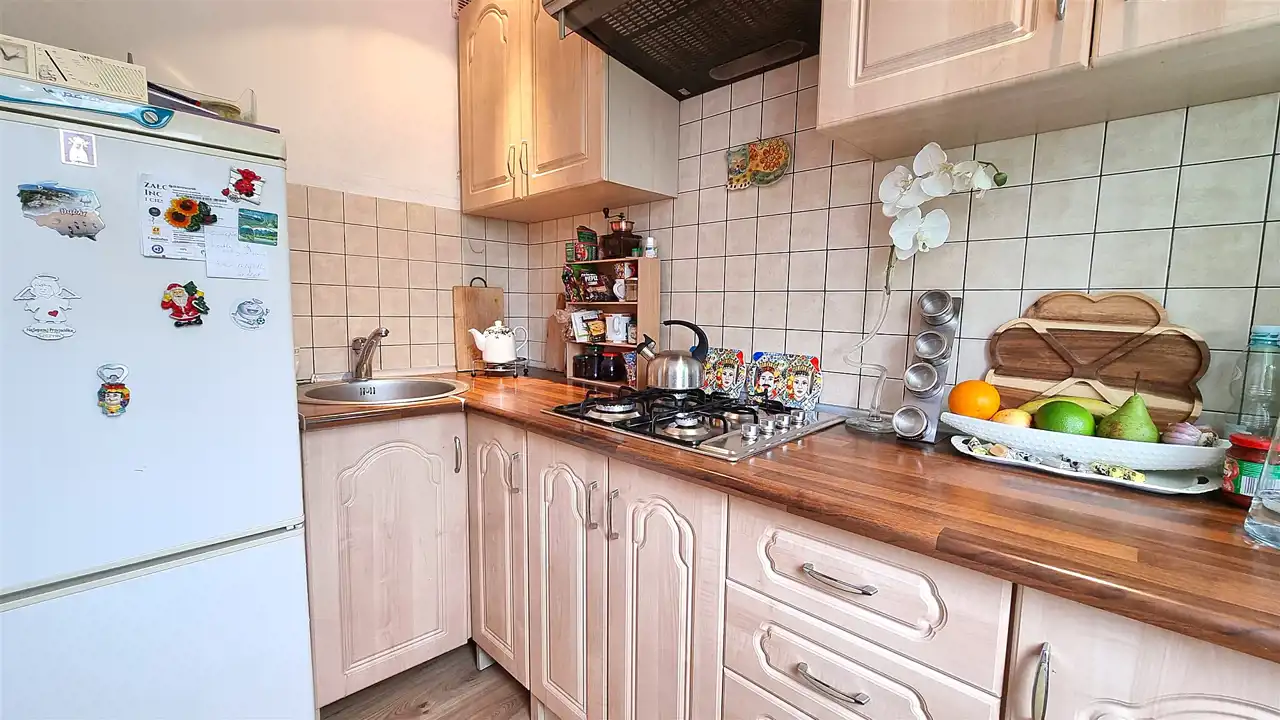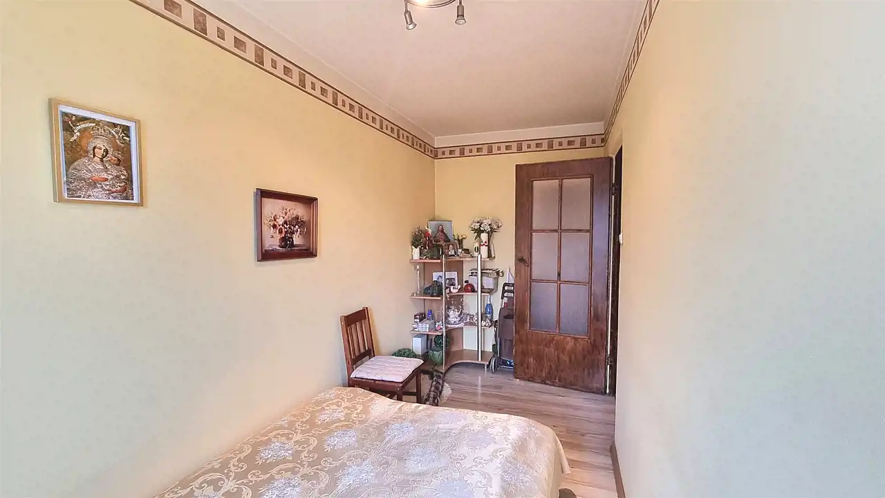 Podłogi w pokojach, kuchni i przedpokoju wyłożone nowszymi panelami, ściany pokryte staranną gładzią. Kuchnia z umeblowaniem. Przedpokój wyposażony w pakowną szafę 3-drzwiową. Ściany pokryte dekoracyjnym tynkiem. W łazience terakota na podłodze, glazura na ścianach, kabina prysznicowa. Bieżąca woda z sieci miejskiej. W budynku funkcjonuje stacja uzdatniania wody.