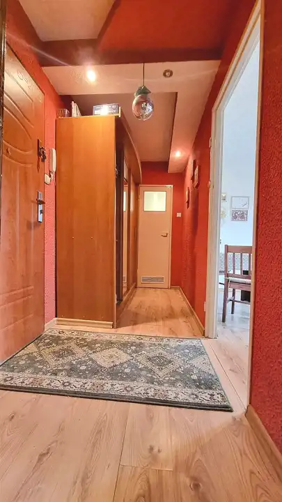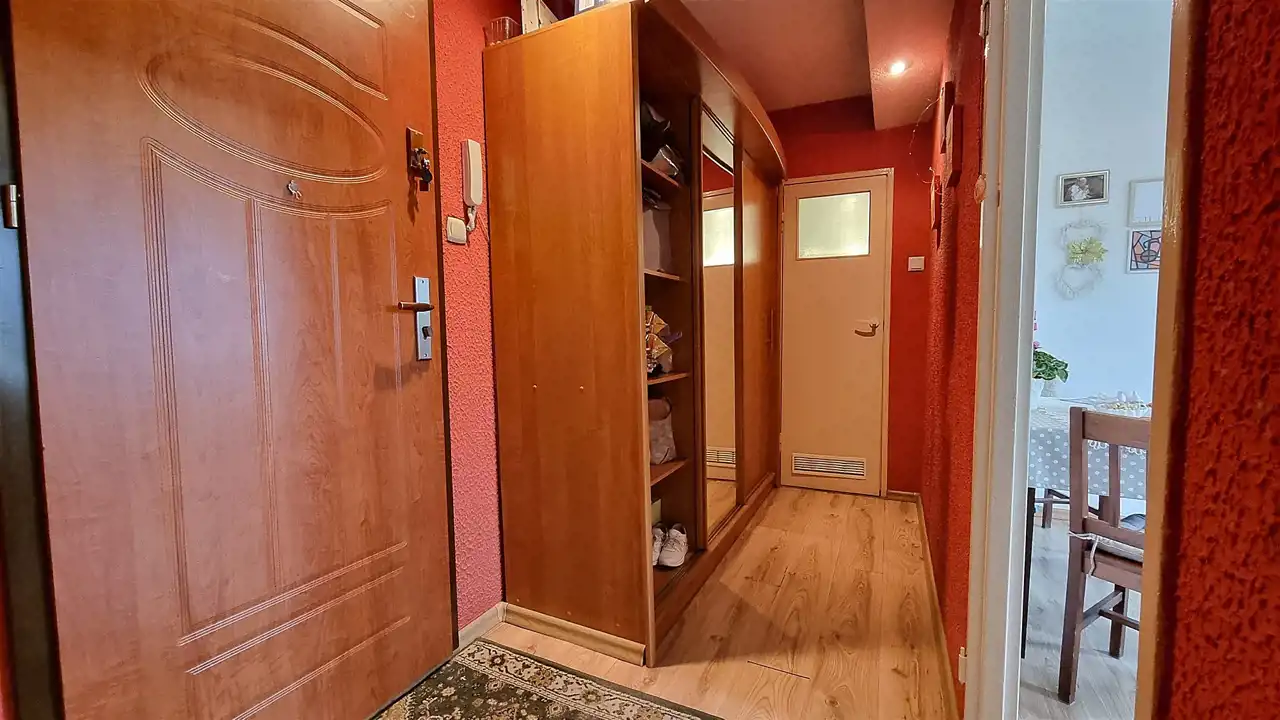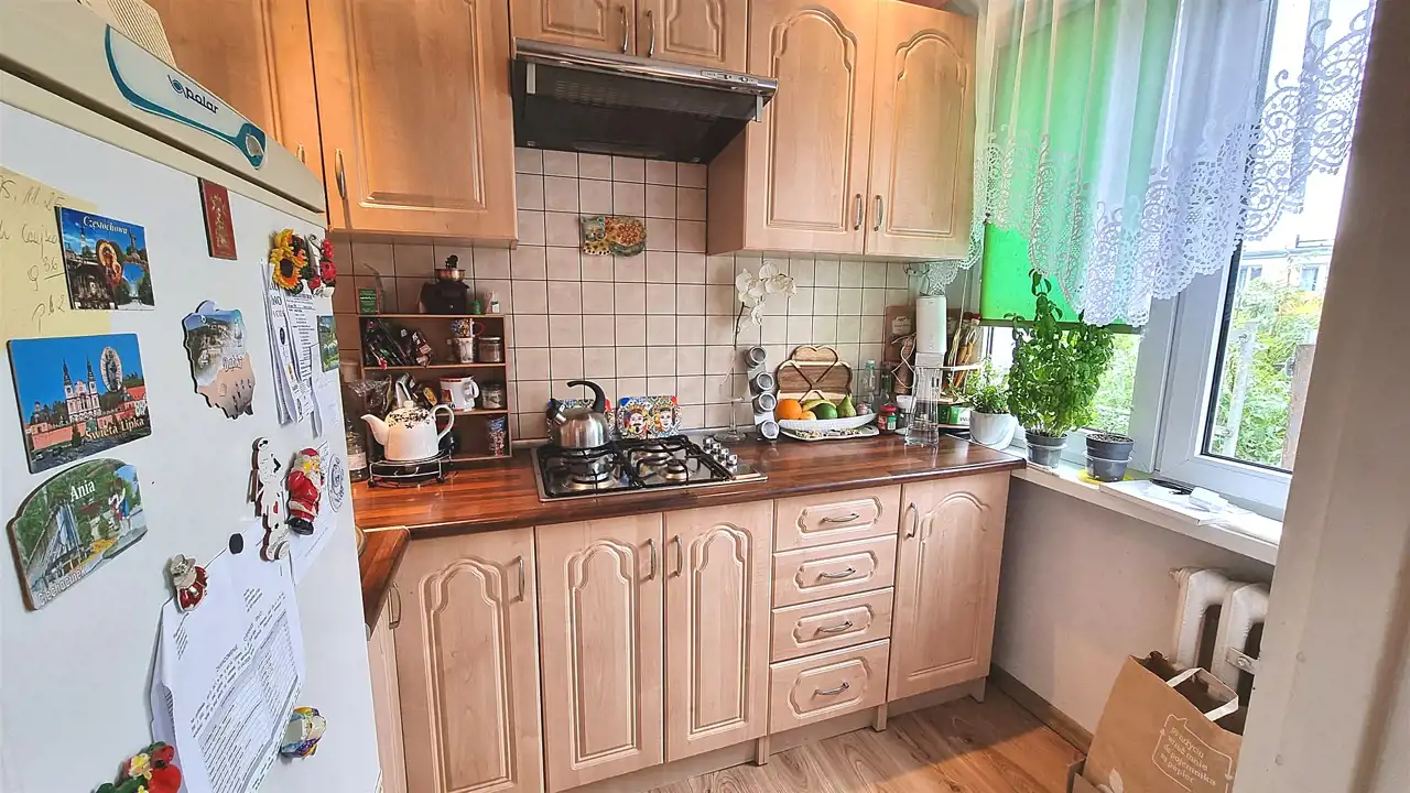 W cenie lokalu pozostaje wyposażenie kuchni, przedpokoju oraz komody w salonie.