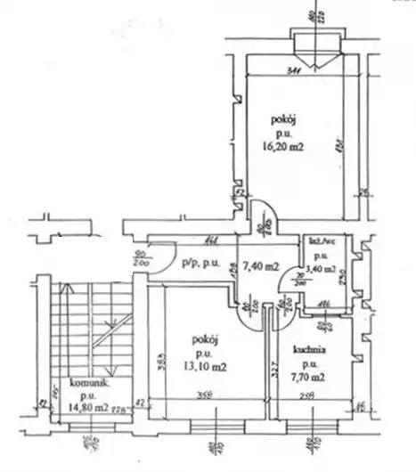 Mieszkanie składa się z 2 pokoi o pow. 16,20 m2, 13,10 m2; dużej, jasnej kuchni o pow. 7,70 m2, łazienki z WC- 3,40 m2 oraz przedpokoju - 7,40 m2. Drzwi balkonowe - tzw.balkon francuski.