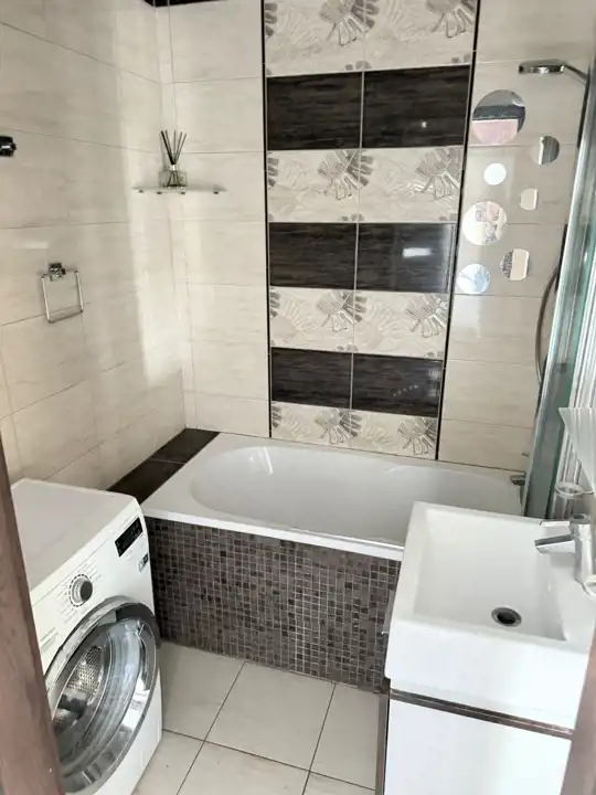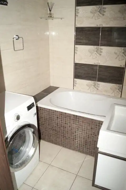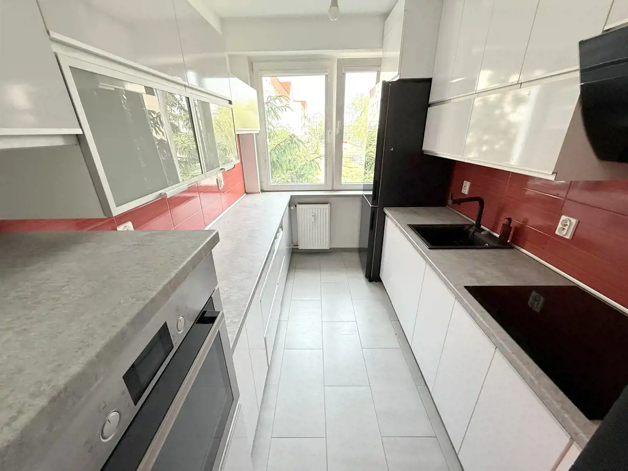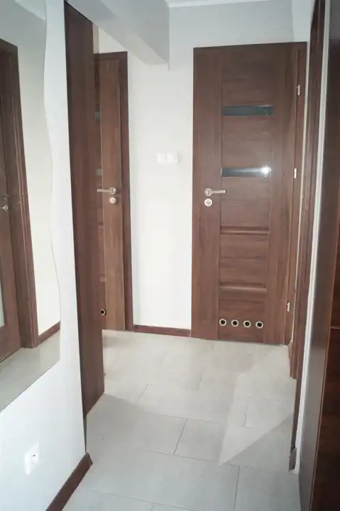 Kuchnia wyposażona w zabudowę kuchenną wraz ze sprzętem AGD(płytę indukcyjną, zmywarkę, lodówkę, okap oraz piekarnik). Łazienka wyposażona w wannę, umywalkę z szafką oraz pralkę. W WC- WC-kompaktowe . Na przedpokoju znajduje się duża szafa typu komandor oraz mniejsza szafa. Cały sprzęt AGD wliczony w cenę mieszkania.