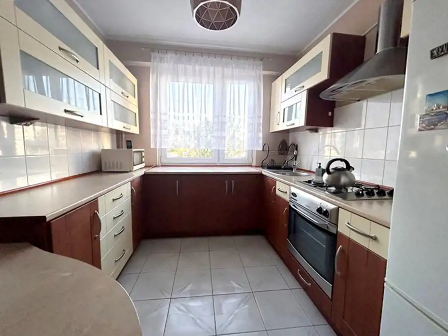 W kuchni znajdują się meble kuchenne wraz ze sprzętem AGD (lodówka, płyta gazowa, piekarnik, okap). Łazienka wyposażona w kabinę prysznicową, szafkę z umywalką oraz pralkę. W WC znajduje się WC kompaktowe.