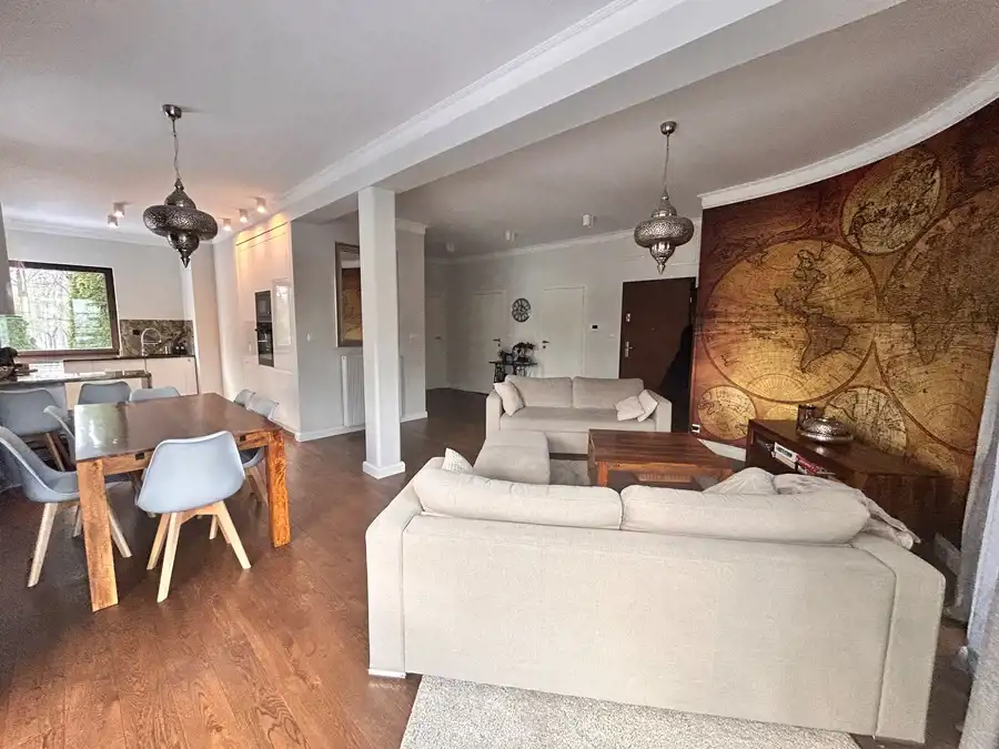· Salon z aneksem kuchennym – przestronny salon połączony ze stylowo wykończoną kuchnią i bezpośrednim wyjściem na balkon typu LOGGIA w układzie "L", z którego to mamy widok na pięknie zagospodarowany ogród, dzięki któremu możemy cieszyć się z kawałka zieleni i miejsca do spędzania cudownego czasu z rodziną i znajomymi na świeżym powietrzu.