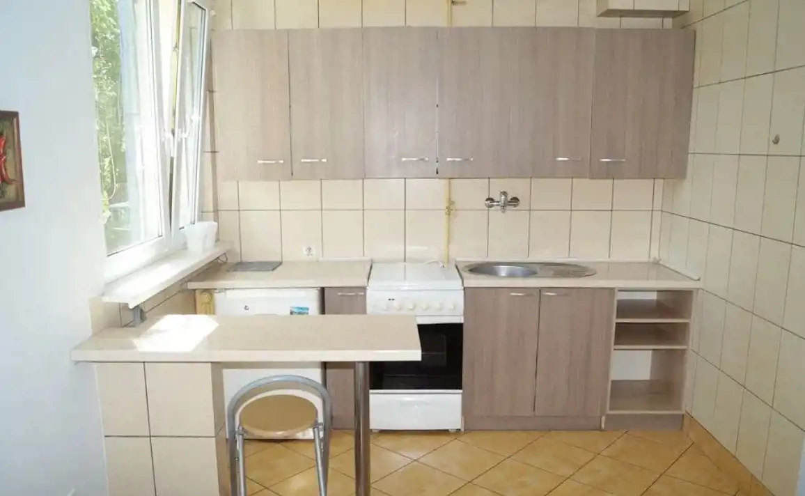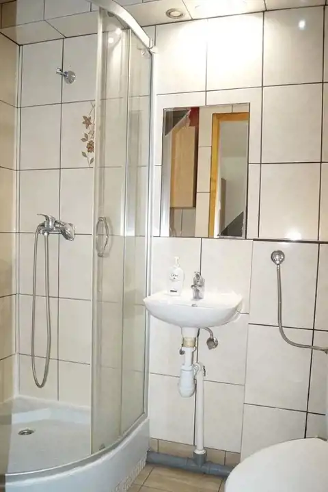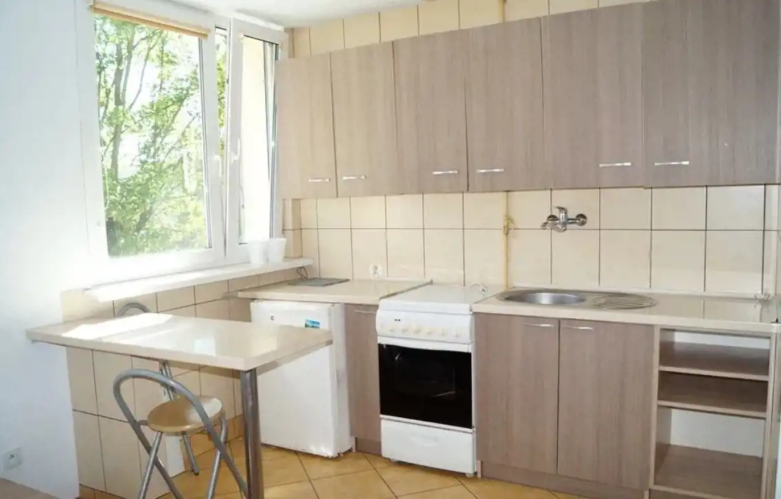 W skład mieszkania wchodzi DUŻY ustawny salon z aneksem kuchennym ( zabudowa kuchenna wraz ze sprzętem : lodówka, kuchenka gazowa z piekarnik elektryczny) oraz łazienka z WC. Łazienka wyposażona w prysznic oraz pralkę. Salon wyposażony w kanapę, stół kawowy, dużą szafę, stolik pod TV, regał.
