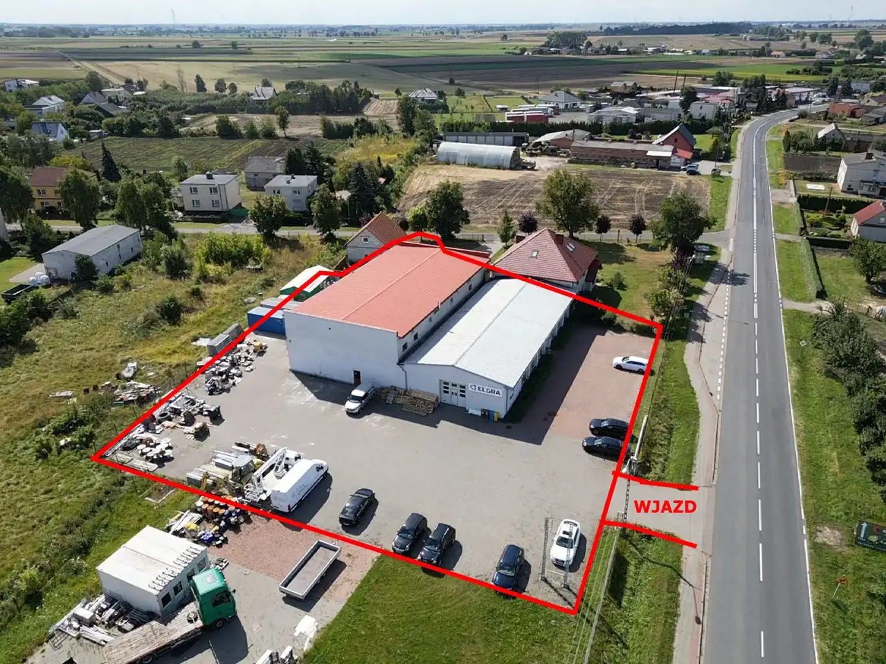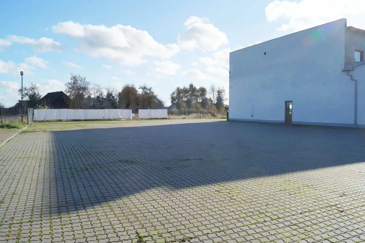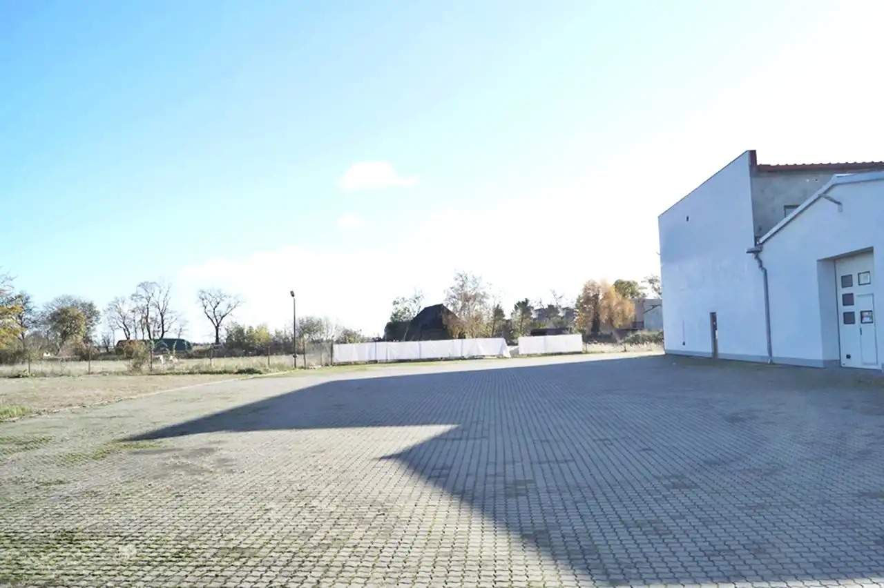 - Duży, utwardzony plac – idealny na parking dla klientów, przestrzeń manewrową dla tirów czy dodatkową zabudowę.