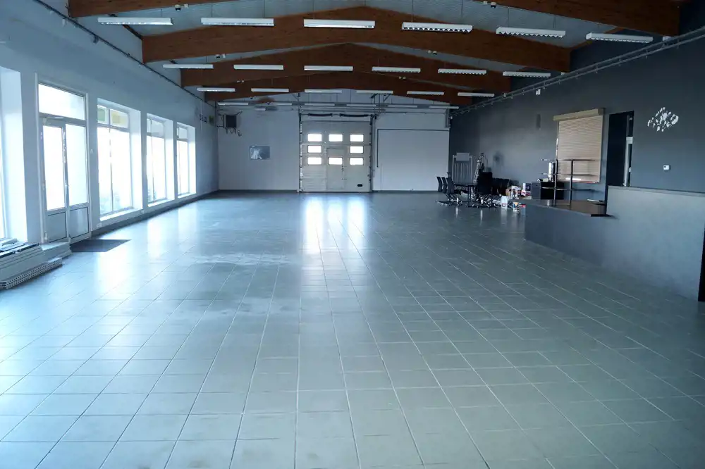 - główne pomieszczenie: 190 m², wys. 7,5 m
