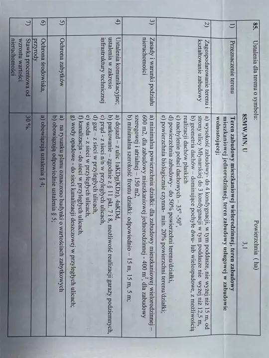 Miejscowy Plan Zagospodarowania Przestrzennego – Symbol: 85MW,MN,U Przeznaczenie: