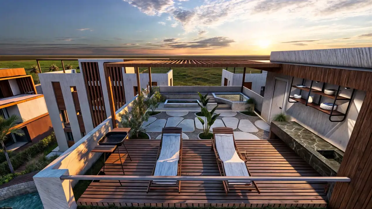 Apartamenty są w wersji z balkonem lub zadaszonym trasem na dachu lub na zewnątrz.