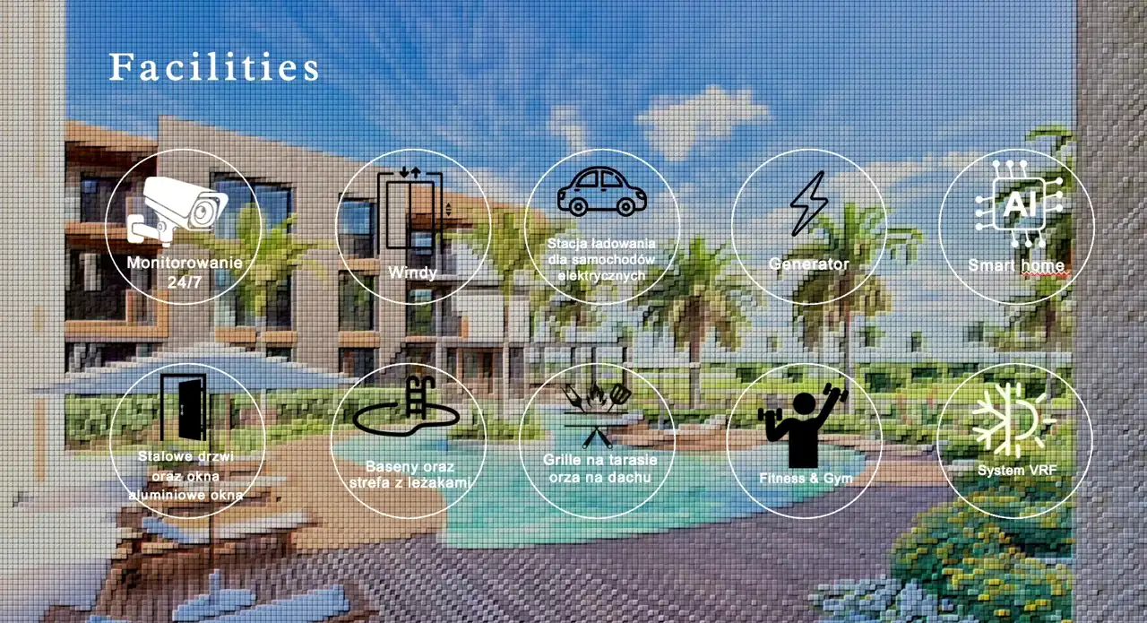 Do dyspozycji mieszkańcy mają baseny wraz ze strefą leżakowania, dostęp do fitness i gym, na tarasie grille oraz wiele innych udogodnień!
