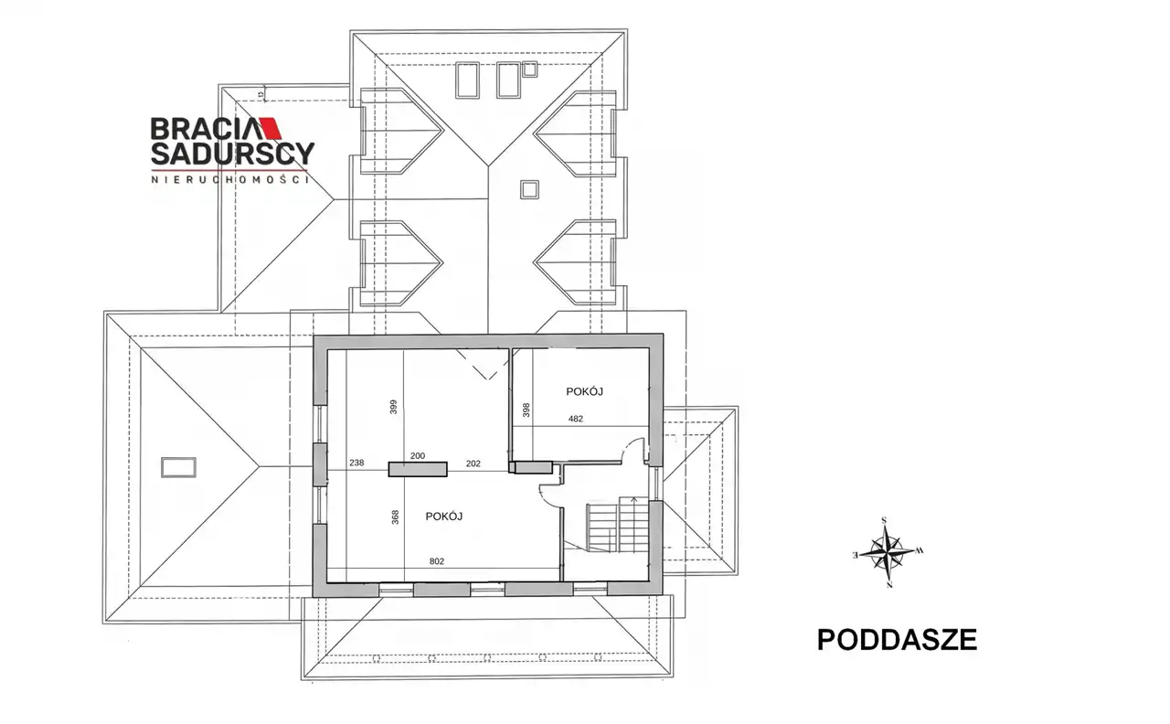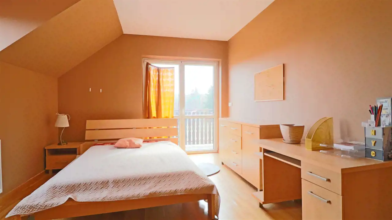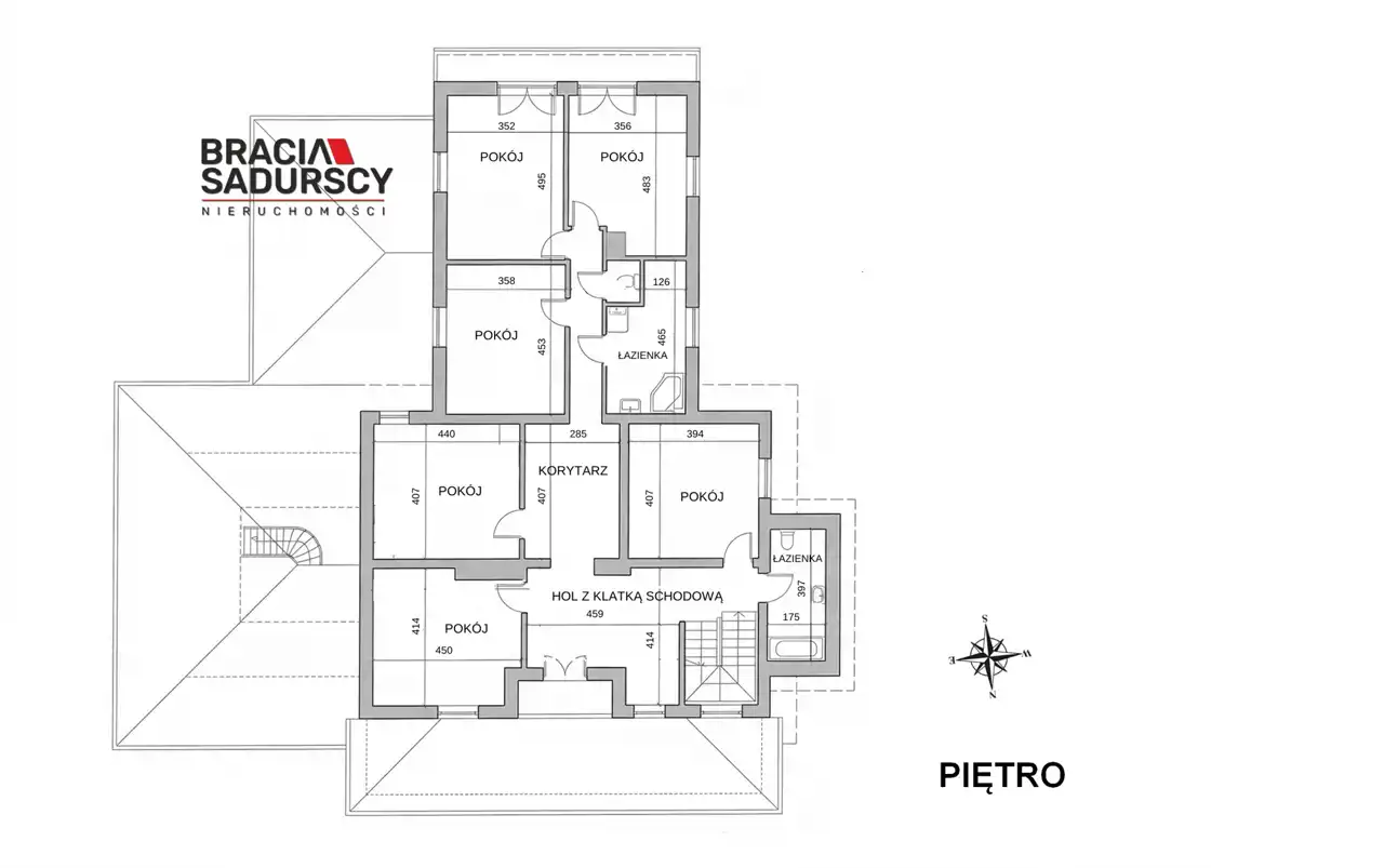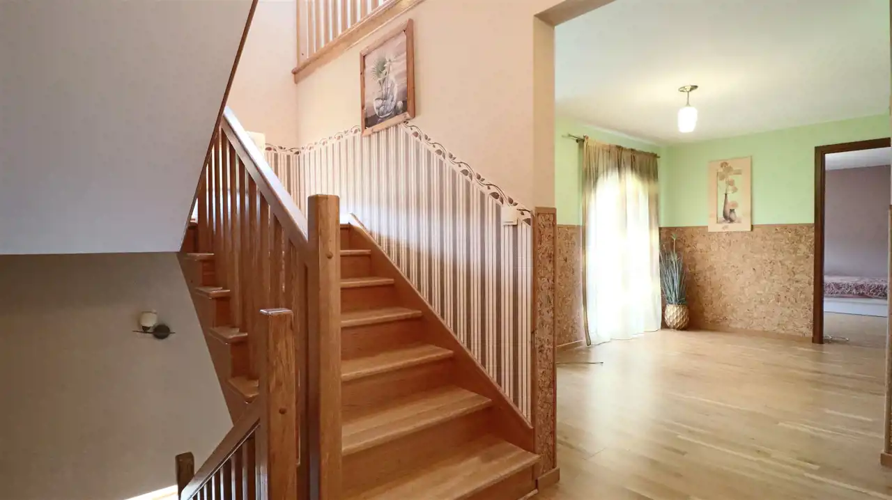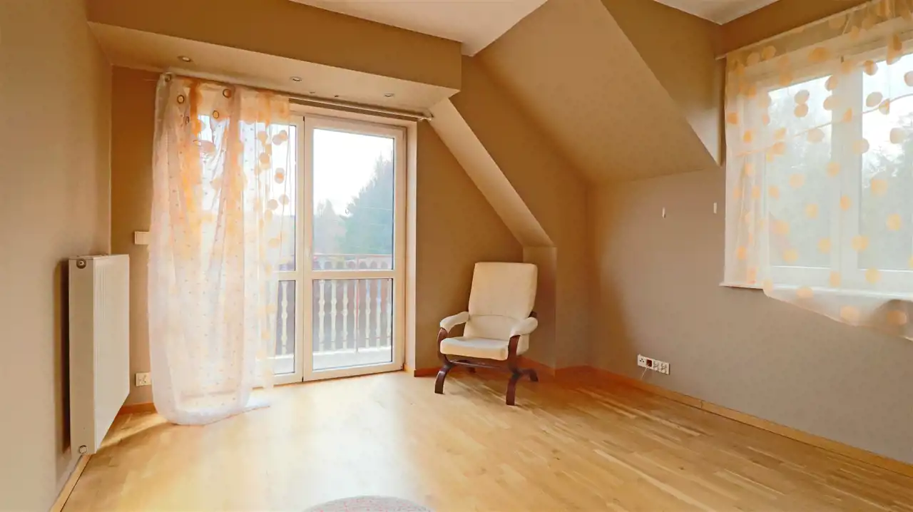 Piętro (152,06 m²): 6 pokoi, 2 łazienki i WC – przestrzeń idealna na pokoje mieszkalne, biura lub gabinety.