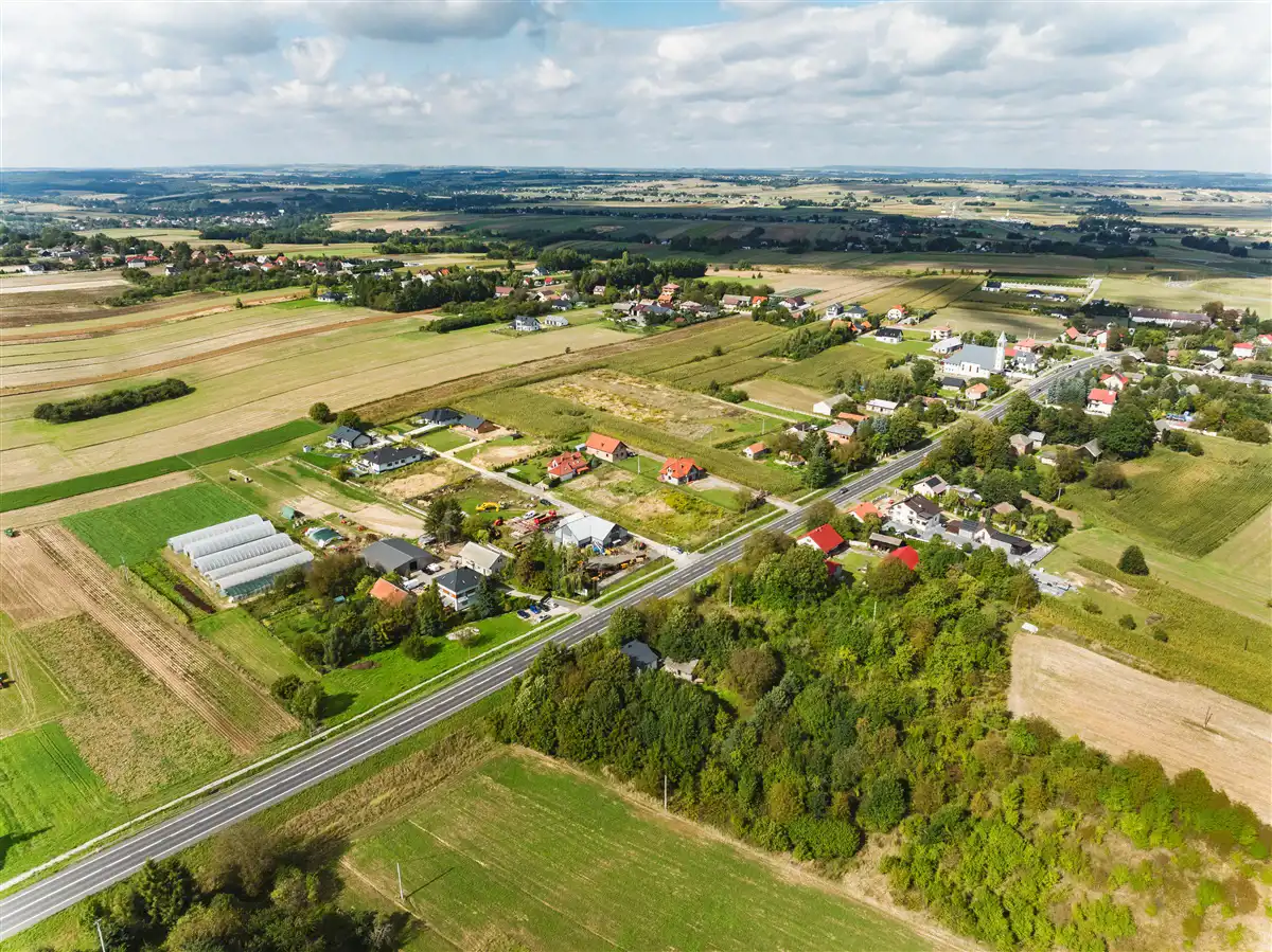 W bliskiej odległości sklep, szkoła podstawowa. Dużym atutem jest bliskość węzła Widoma, dzięki, któremu droga ekspresową S7 możemy dostać się do Krakowa w ciągu 15 minut. W okolicy bardzo duża ilość terenów zielonych oraz rekreacyjnych.
