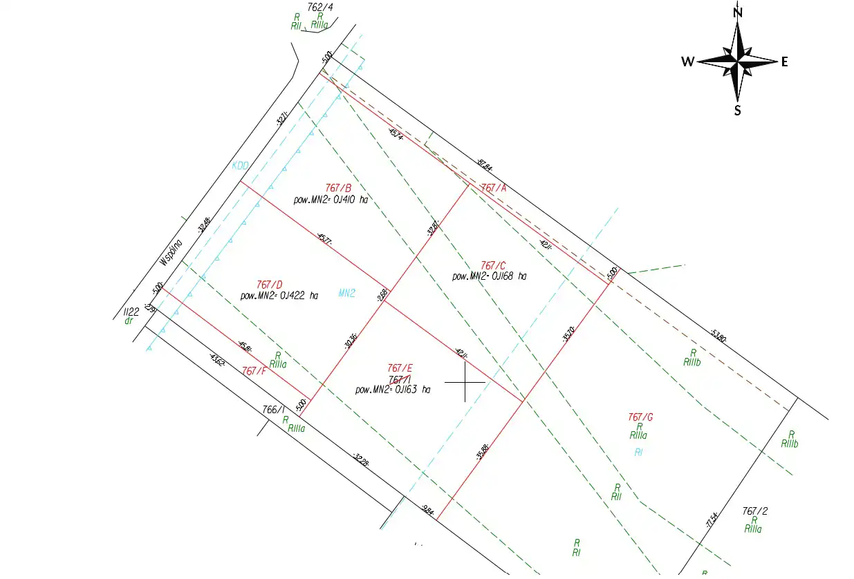 W terenach MN2 - zabudowa jednorodzinna w układzie wolnostojącym, bliźniaczym, szeregowym.