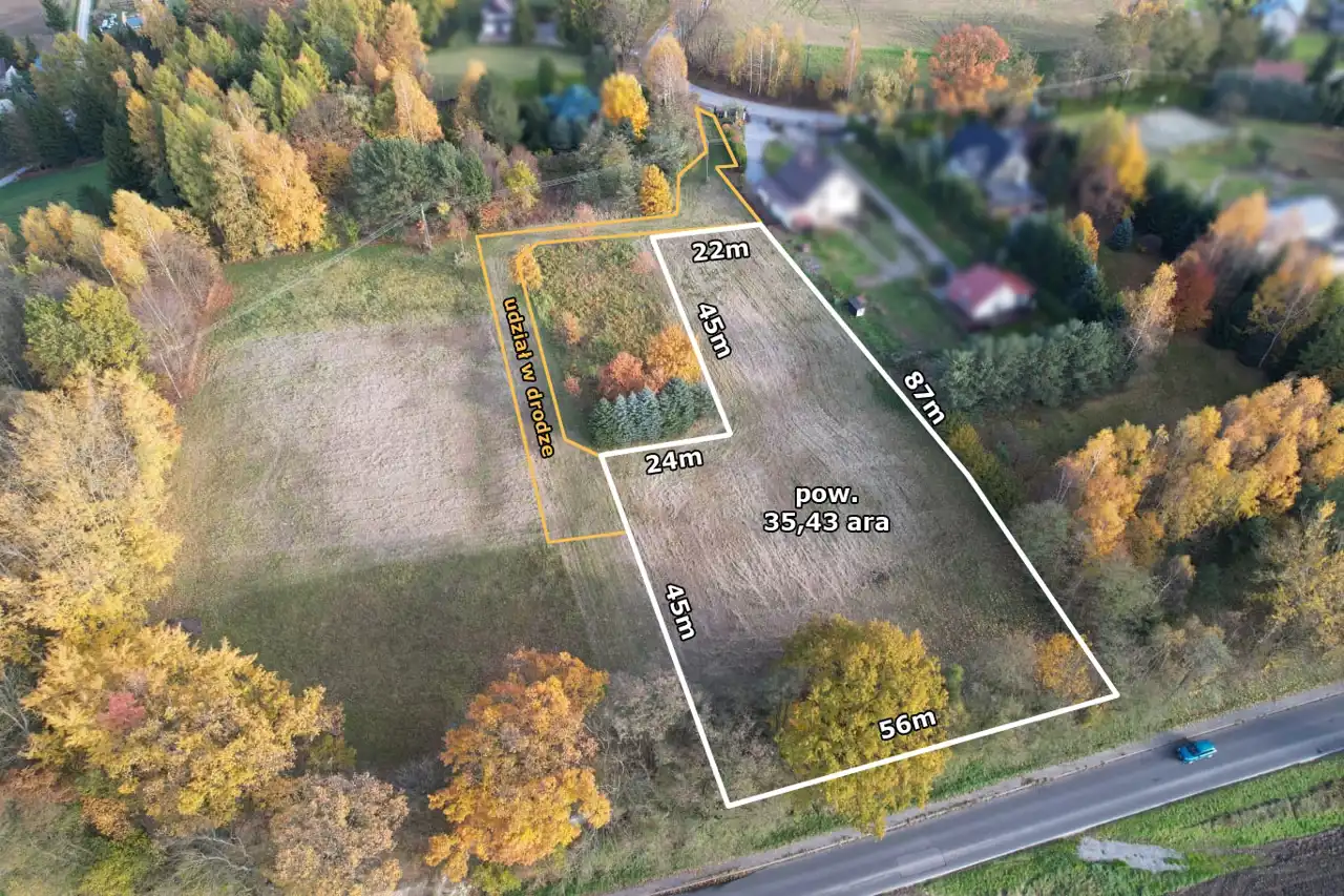 Do sprzedania atrakcyjna, widokowa działka budowlana położona w miejscowości Maszków, gm. Iwanowice o łącznej pow. 35,43 ara. Działka w kształcie zbliżonym do litery "L" o wymiarach 22m/87m/56m/45m/24m/45m. Dojazd do działki drogą gminną a następnie drogą prywatną (udział). Działka oznaczona w MPZP jako "MU2" - tereny zabudowy mieszkaniowo-usługowej.