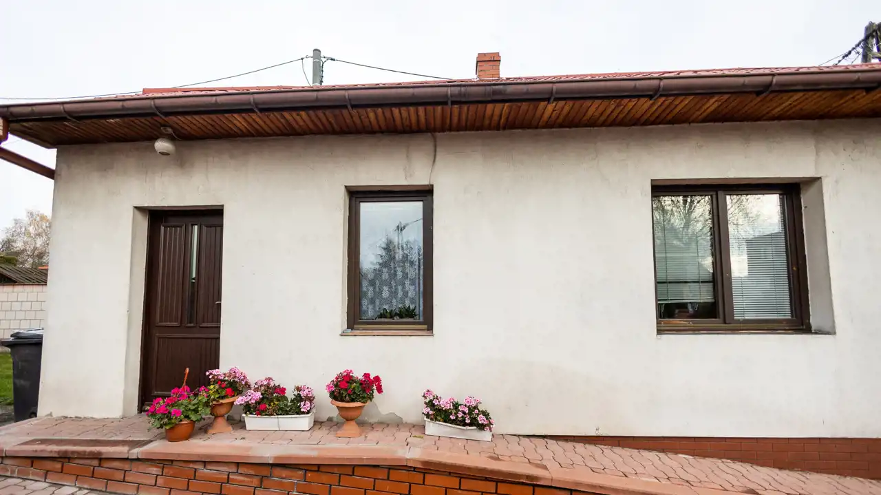 Nieruchomość wybudowana około 1950 roku z pustaka, kryta blachodachówką, ocieplenie styropianem 10cm. Okna drewniane nowy typu.