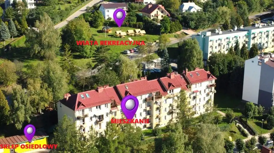 - bardzo dobra lokalizacja – w pobliżu sklepy, szkoła, przystanek autobusowy, a jednocześnie blisko do centrum uzdrowiska, terenów rekreacyjnych -nieopodal bloku znajdują się wiaty rekreacyjne z miejscem na grilla i ognisko;