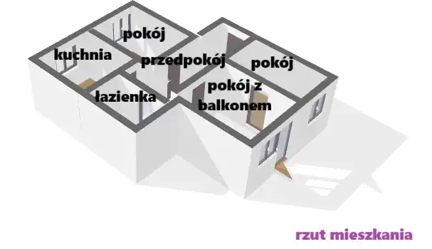 - trzech pokoi w tym jeden z balkonem -pokój przechodni,