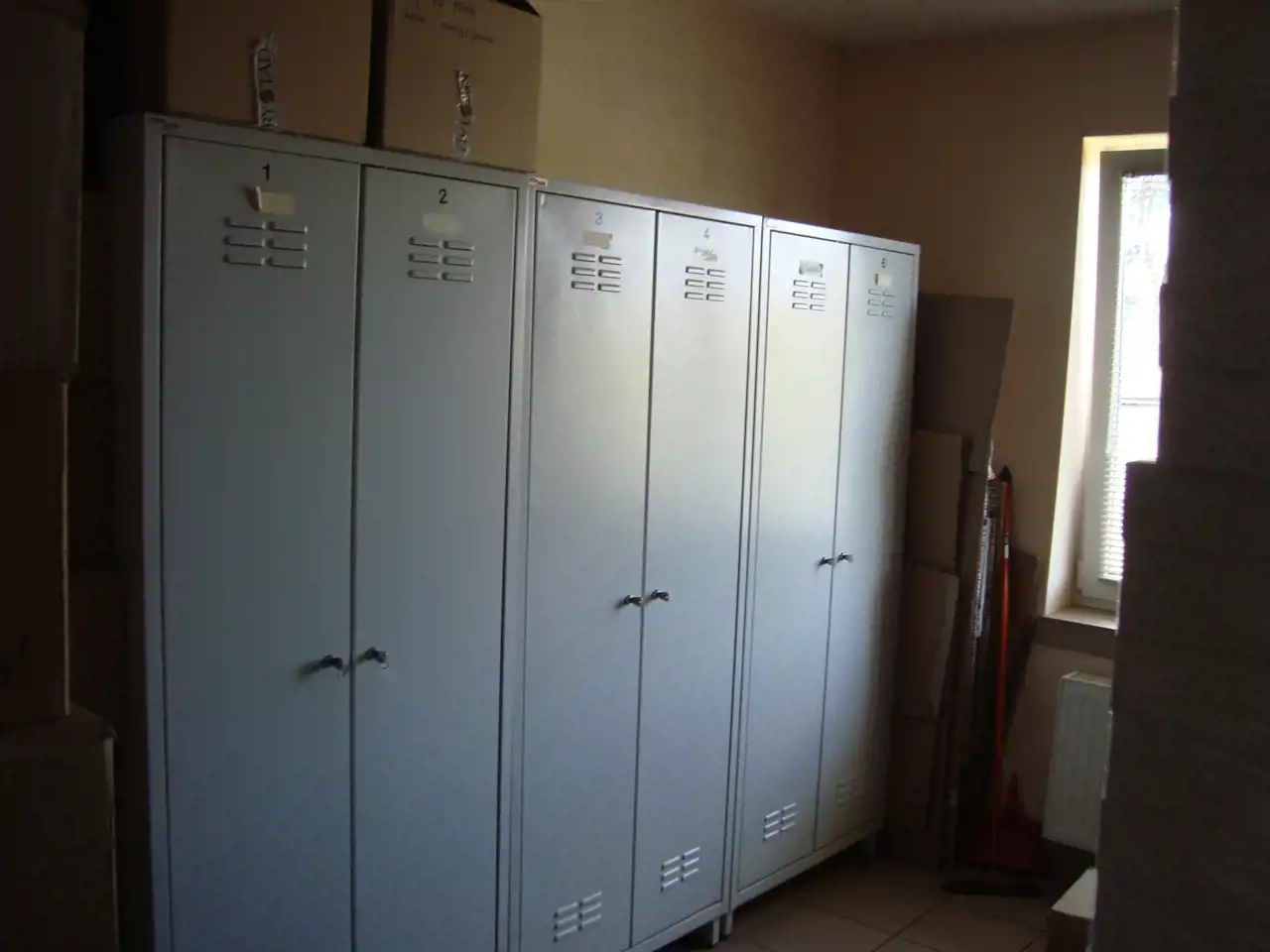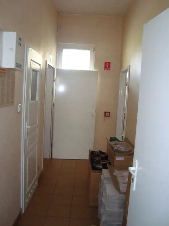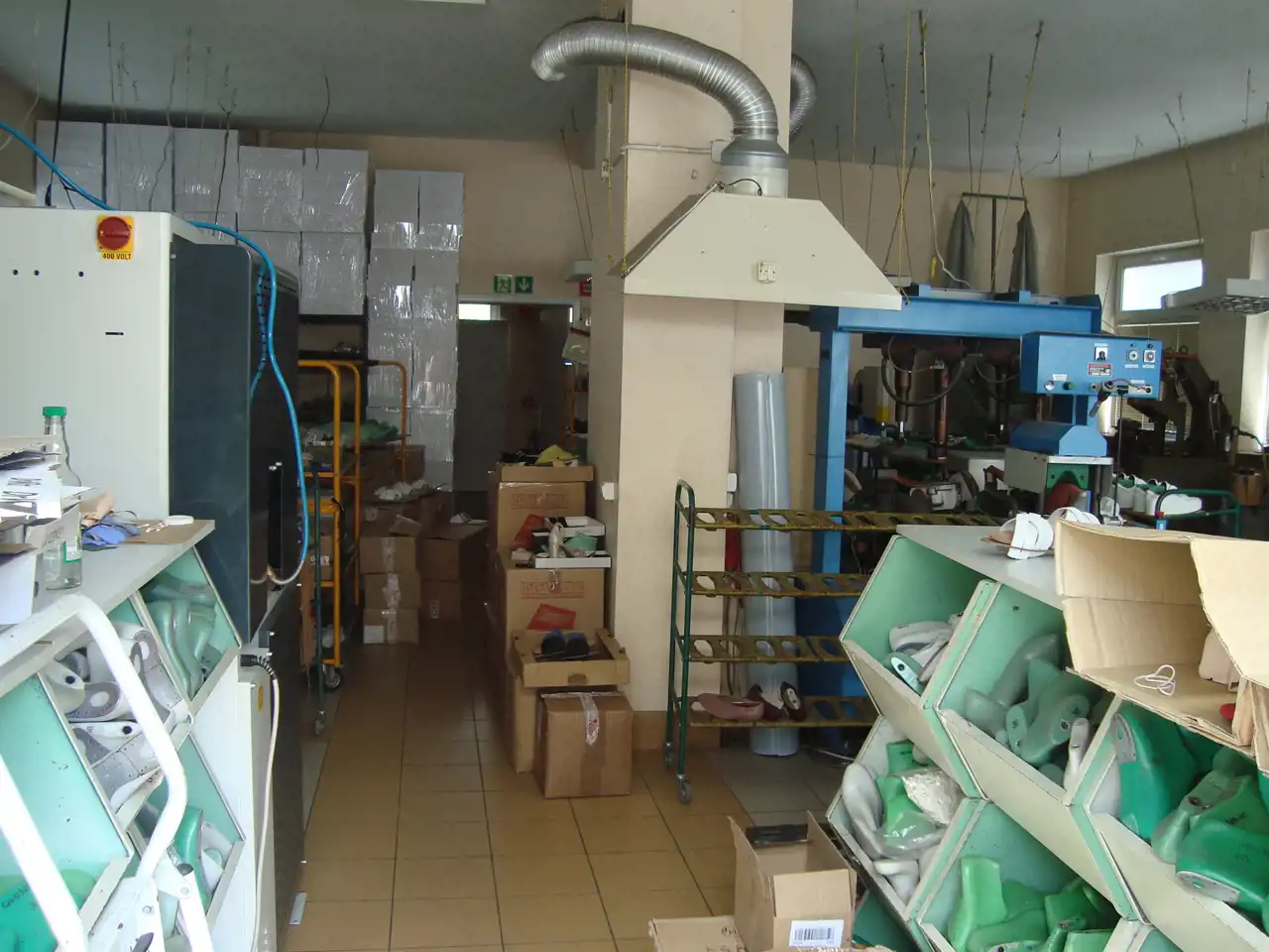 Piętro: duża hala produkcyjna /lub magazynowa/ pomieszczenie socjalne, łazienka, wc, szatnia dla pracowników.