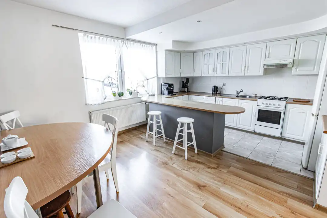 Dom wyposażony jest w centralne ogrzewanie z pieca gazowego lub pieca na drewno, co daje niezależność i możliwość wyboru najkorzystniejszego rozwiązania.
