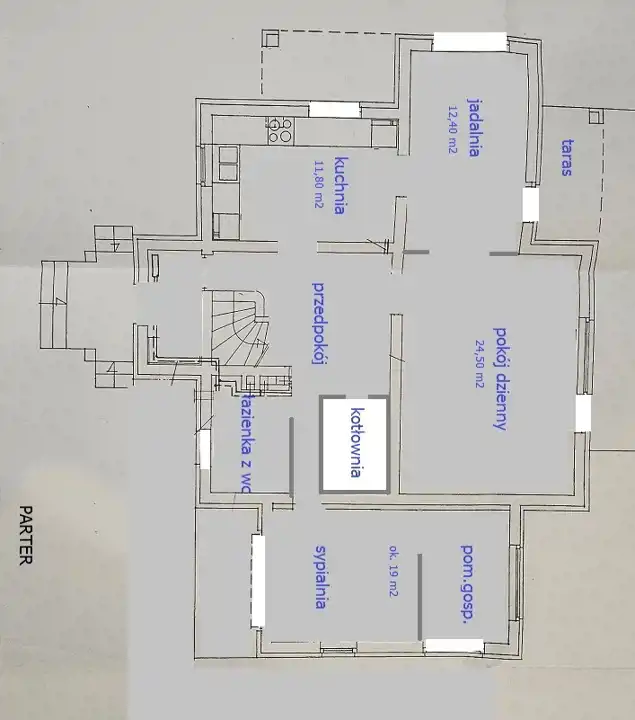 W podpiwniczeniu znajduje się kotłownia (aktualnie piec węglowo-drzewny, gaz w ulicy).