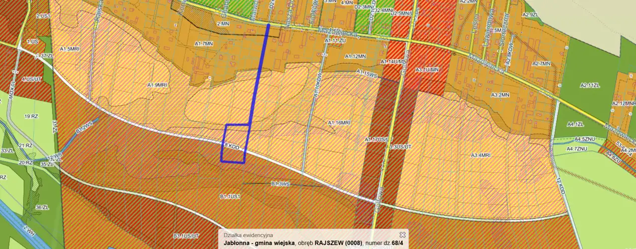 Działka w miejscowym planie jest częściowo przeznaczona pod drogę.
