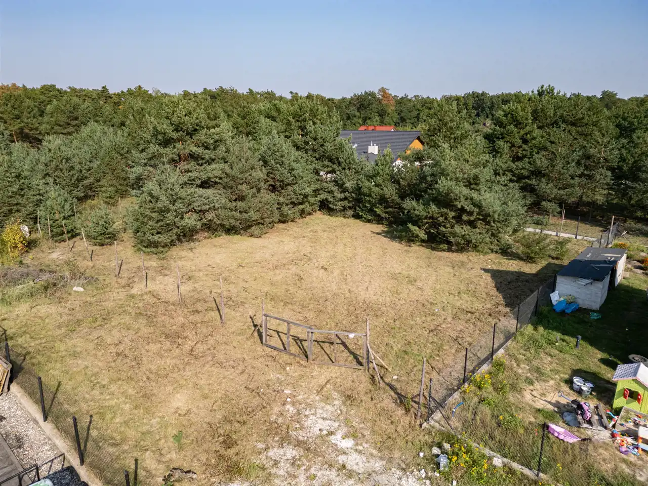 Działka objęta MPZP z przeznaczeniem zabudowy mieszkaniowej. Działka ogrodzona ogrodzeniem tymczasowym, budowlanym. Na działce urokliwe sosny czarne, ktore mogą się pięknie wkomponować w zagospodarowanie prywatnej przestrzeni.