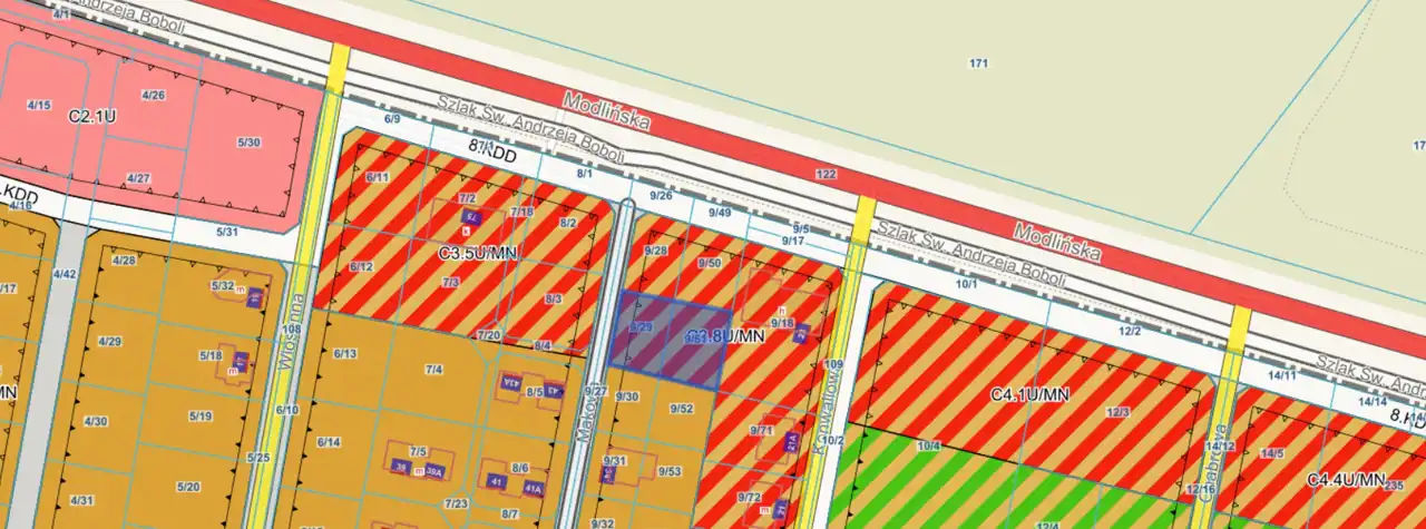 Teren jest objęty miejscowym planem zagospodarowania przestrzennego pod zabudowę mieszkaniowo-usługową.